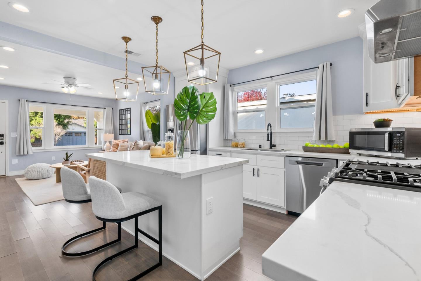 Welcome to 856 N 14th Street. Centrally located in San Jose, this charming home has undergone extensive renovations to offer a fresh and inviting living space. The home features a renovated kitchen with stainless steel appliances, a retractable faucet, a GE gas stove, and white shaker soft close cabinets. The bathroom has also been completely remodeled, boasting a shower over the tub with custom title surround. The home has been enhanced with a new wifi enabled automatic front security gate, providing both security and aesthetic appeal. Further enhancements include dual pane windows, central heating and air. The exterior have been freshly painted, providing a crisp and modern look throughout. Additionally, the living room is bathed in natural light from the newly oversized windows and recessed lighting, complemented by water-resistant flooring. The finished basement features epoxy room and has permits approved for adding two additional bedrooms and a bathroom. A long driveway provides ample parking space for multiple cars. Strategically located near Luna Park, Watson Park, Japantown, shopping centers, major tech companies includ. the new Google campus and Cisco, Zoom, and Adobe. Enjoy easy access to major routes like 101,87,880, and 680.