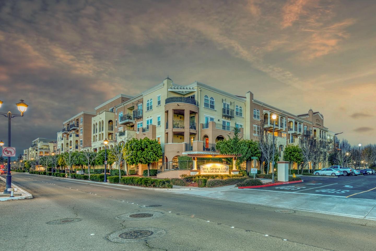 Presenting this exceptional 2-beds, 2-baths, 1,309 sqft single-level condo on the 3rd floor, one of the few hard-to-come-by units in the well-maintained Terra Serena Luna gated complex. The unit offers a spacious living & dining area combo, a master bedroom with a walk-in closet, double vanity, a large soaking tub, a shower stall, and direct access to the balcony through a private French door. Additional features include new carpet, fresh paint, and new kitchen appliances. The unit also has an in-unit laundry room and central A/C and heating. The south-facing living room and bedrooms overlook O'Toole Elms Park, flooding the space with natural light year-round. The spacious balcony, with solid walls, offers additional privacy while enjoying the views and is equipped with storage. The unit comes with two side-by-side parking spaces in the gated garage, an exterior storage unit, and EV chargers located on the south side of the 700 S Abel St complex, adjacent to the unit. The complex provides a clubhouse, gym, swimming pool and jacuzzi, BBQ, playground, courtyard, and elevators. HOA dues cover water, garbage, and insurance.