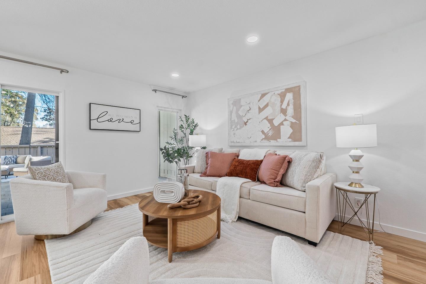 Welcome to this rare updated townhouse with a large backyard in the highly desirable Stoneridge neighborhood. This charming 3-bedroom plus bonus office home offers the perfect blend of comfort and modern living. It features a spacious bonus room, ideal for a children's playroom or a private home office. Upon entry, you are greeted by high ceilings that create a bright atmosphere. Modern flooring flows throughout the home. The updated kitchen features Quartz countertops, European-style cabinets and a convenient breakfast bar - ideal for entertaining or enjoying family meals. The private front patio & large backyard offer multiple outdoor spaces for relaxation and gatherings, featuring a fenced setting that backs to a greenbelt providing privacy. Additional highlights include a finished 2-car garage with a washer and dryer, offering added functionality and convenience. With a spacious driveway and the finished garage, there's ample room to park 4 to 6 cars a rare find in this area. Located just minutes from freeway access, BART, top-rated Pleasanton schools, local parks, and the popular Stoneridge Mall, this home delivers unmatched convenience for both commuters and families. Don't miss the opportunity to make this property yours!