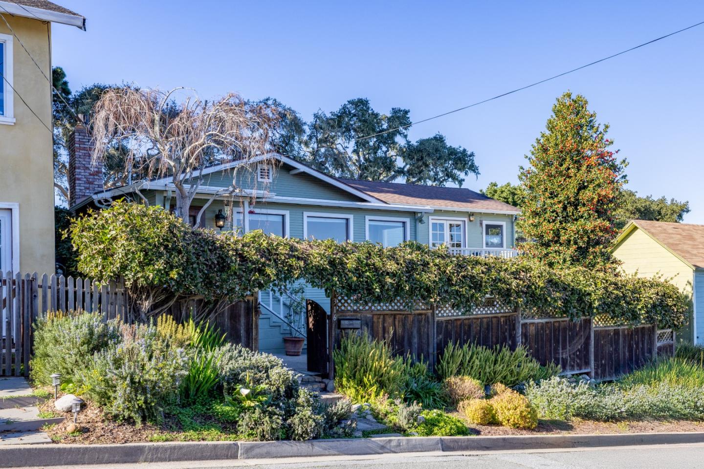 Here is your opportunity to own a home with ocean and Monterey Bay views just a few short blocks from the coast in America's last home town of Pacific Grove. Adorable curb appeal, the mature and lush landscaping is highlighted by a towering Holly tree as you walk through the entry gate onto the front patio. Once inside a wall of windows in the living room captures peaks of the Monterey Bay. The combination living room/dining room is light & bright with newer white carpet. The updated kitchen offers abundant custom cabinetry and plenty of counter space. The large primary bedroom suite offers a walk-in closet, bathroom and a private deck with more bay views. Bring your contractor to update the bathrooms, put on a fresh coat of paint and make other minor repairs. This convenient location is just a few short blocks to the coast, Monterey Bay Aquarium, Recreation Trail, Cannery Row as well as restaurants and shopping.