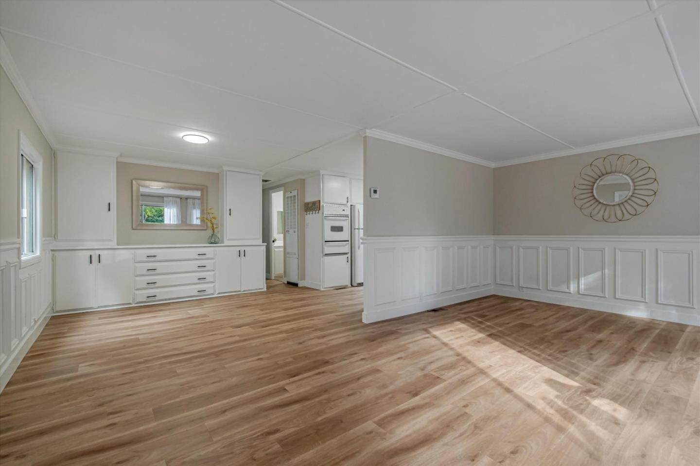 Are you ready to escape to a peaceful paradise? Check out this Home Sweet Home by the River! Enjoy your very own piece of tranquility nestled in the majestic redwoods of Ben Lomond and walking distance from the breathtaking riverbanks of the San Lorenzo River! This modern home offers a spacious floorplan, large living room with huge front windows overlooking the redwoods. Both bedrooms are spacious with walk in closets. Enjoy a remodeled bathroom w/ a new shower, mirror & fixtures. The home is tastefully updated with wainscoting, new trim, new interior & exterior paint, remodeled kitchen w/ quartz countertops, new furnace, new modern redwood siding at entryway, new side patio overlooking a tranquil view and much, much more! Whether you're looking for a peaceful weekend retreat or a charming home with a tranquil ambiance by the river, this rare gem offers you endless possibilities!