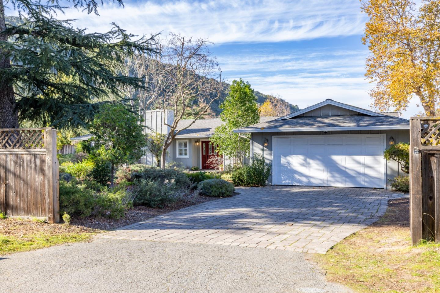 Welcome to this warm and inviting California Ranch-style home, perfectly situated on a flat, usable acre in sunny Carmel Valley. Just minutes from world-class dining, wineries, and top-rated schools, this single-level gem offers the ultimate blend of tranquility and convenience. Step inside to discover a thoughtful layout with the primary bedroom and living room on one end, and three additional bedrooms, an office space, and a family room on the other. The living room has vaulted ceilings, a cozy fireplace and a large dining area. The kitchen is spacious, and has an eat-in area and tons of storage. The primary bedroom suite has high ceilings, gorgeous views of Garland Park, a spacious walk-in closet and direct access to the private patio and pool. Numerous patio doors, skylights and windows create an inviting atmosphere that brings the beauty of the outdoors in. World-class hiking and horse riding trails are just outside your door. Whether you are savoring a glass of wine while watching the spectacular sunsets on the expansive patio, taking in the sweeping views, or simply soaking up the sun in your private pool, this home is a true sanctuary. Come see why everyone loves the friendly Carmel Valley Village!
