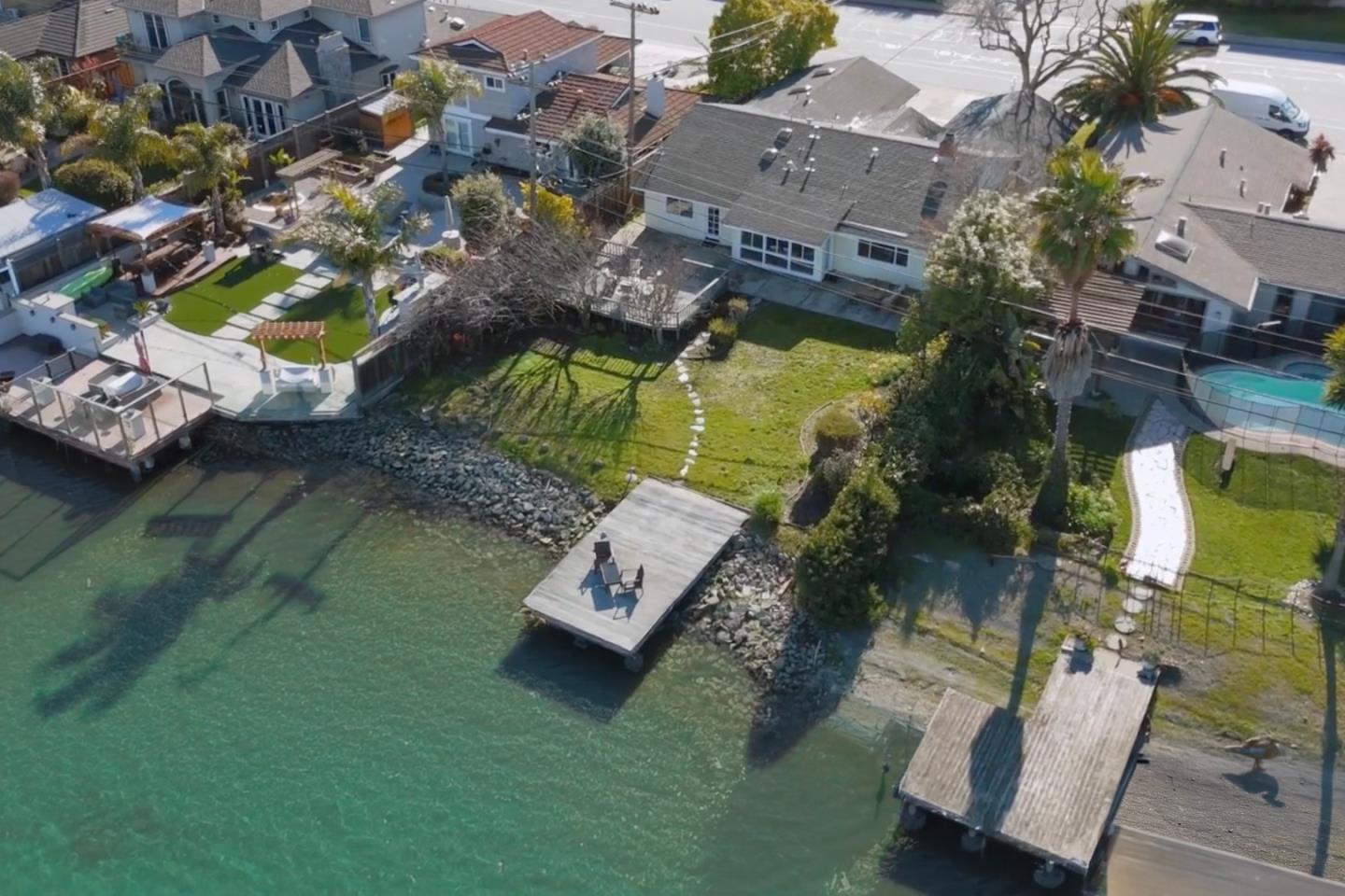 Experience waterfront living in this stunning 4-bedroom, 2.5-bathroom home in San Mateo, featuring breathtaking wide water views and a seamless open floor plan. Designed for modern living, the home boasts vaulted ceilings and large windows that flood the space with natural light while framing picturesque water views. This light-filled retreat offers a family room with vaulted ceilings, a charming kitchen with a breakfast bar and ample cabinet space, and a dining room with expansive floor-to-ceiling windows overlooking the serene backyard. The double-sided fireplace elegantly separates the living and family rooms, adding warmth and character. Enjoy unbelievable wide water views from many rooms in the home. Step outside to your private oasis, complete with a spacious deck, lush lawn, and a private dock, perfect for relaxing by the water or launching your kayak. The two-car garage and large front yard with a paved courtyard provide additional functional and tranquil spaces for relaxation. This prime location puts amenities such as Los Prados Park and Marine Plaza Shopping Center within strolling distance, easy access to freeway 101, 82 and 92. Don't miss this rare gem!