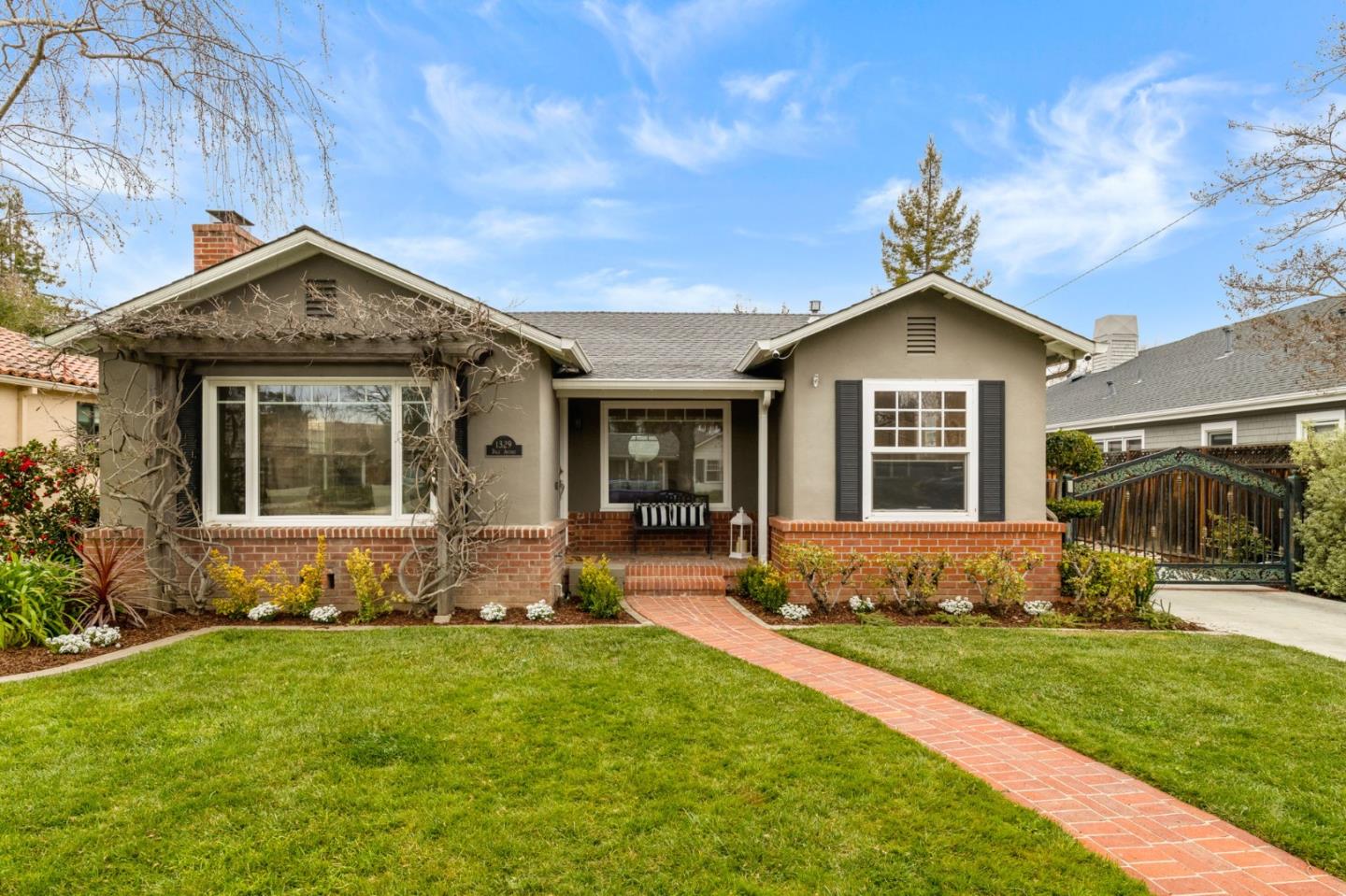 This beautiful 3-bedroom 2-bathroom single-story home in sought-after Cherry and Lupton neighborhood is a must-see! Greeted by an inviting front porch, youll notice two beautiful picture windows that bring natural light and charm to the home. The fabulous floor plan offers both formal and informal living spaces, perfect for entertaining. The spacious kitchen boasts a breakfast bar peninsula, stainless steel appliances, and white cabinets, some with glass doors. Skylights throughout add an abundance of natural light, enhancing the homes airy feel. The serene primary suite features vaulted ceilings, a custom walk-in closet, and a luxurious marble bath with dual sinks, soaking tub, and stall shower. A new formal living room fireplace mantle adds a modern touch to the space. Hardwood floors, recessed lighting, and built-in shelves around the family room TV wall further elevate the homes appeal. French doors lead to a private backyard oasis with a brick patio, outdoor bar area, mature landscaping, and a tranquil arbor seating space. The oversized 2-car garage includes extra storage and a finished bonus room with a ceiling fan and abundant natural light. Conveniently located near Lincoln Ave, this home offers the best of Willow Glen living, style, comfort, and an unbeatable location.