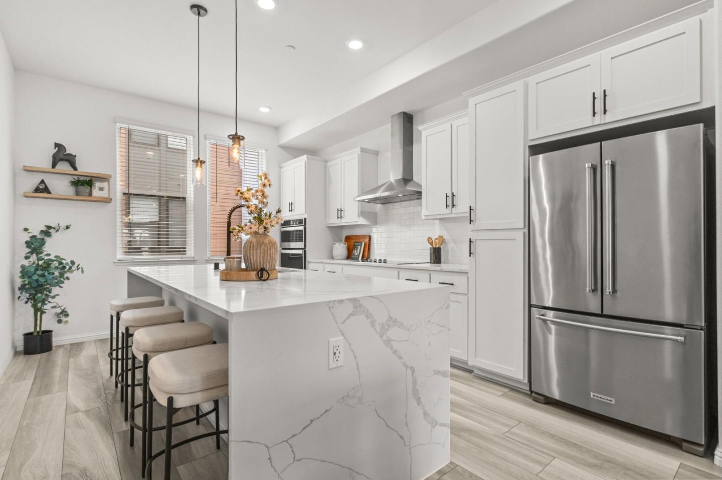 Welcome to 182 Waters Park Circle, a contemporary townhouse nestled in the vibrant Marina Lagoon neighborhood of San Mateo. Built in 2021, this modern residence offers 2 bedrooms, 2.5 bathrooms, and 1,602 square feet. As you step inside, you're greeted by an open-concept main level that seamlessly blends the living, dining, and kitchen areas, creating an inviting space. The kitchen boasts sleek countertops, stainless steel appliances, and ample cabinetry, catering to culinary enthusiasts. Upstairs, the two spacious bedrooms provide comfort and privacy. The primary suite features a generous walk-in closet and an en-suite bathroom with modern fixtures and finishes. Additional highlights include a convenient half-bath on the main level, in-unit laundry facilities, and an attached two car garage offering ample storage space. The property also features a covered deck, perfect for enjoying the pleasant Bay Area climate. Situated in the desirable Marina Lagoon area, residents enjoy proximity to parks, shopping centers, dining options, and easy access to major highways, making commuting a breeze. This townhouse combines modern living with a prime location, offering a unique opportunity to experience the best of San Mateo.