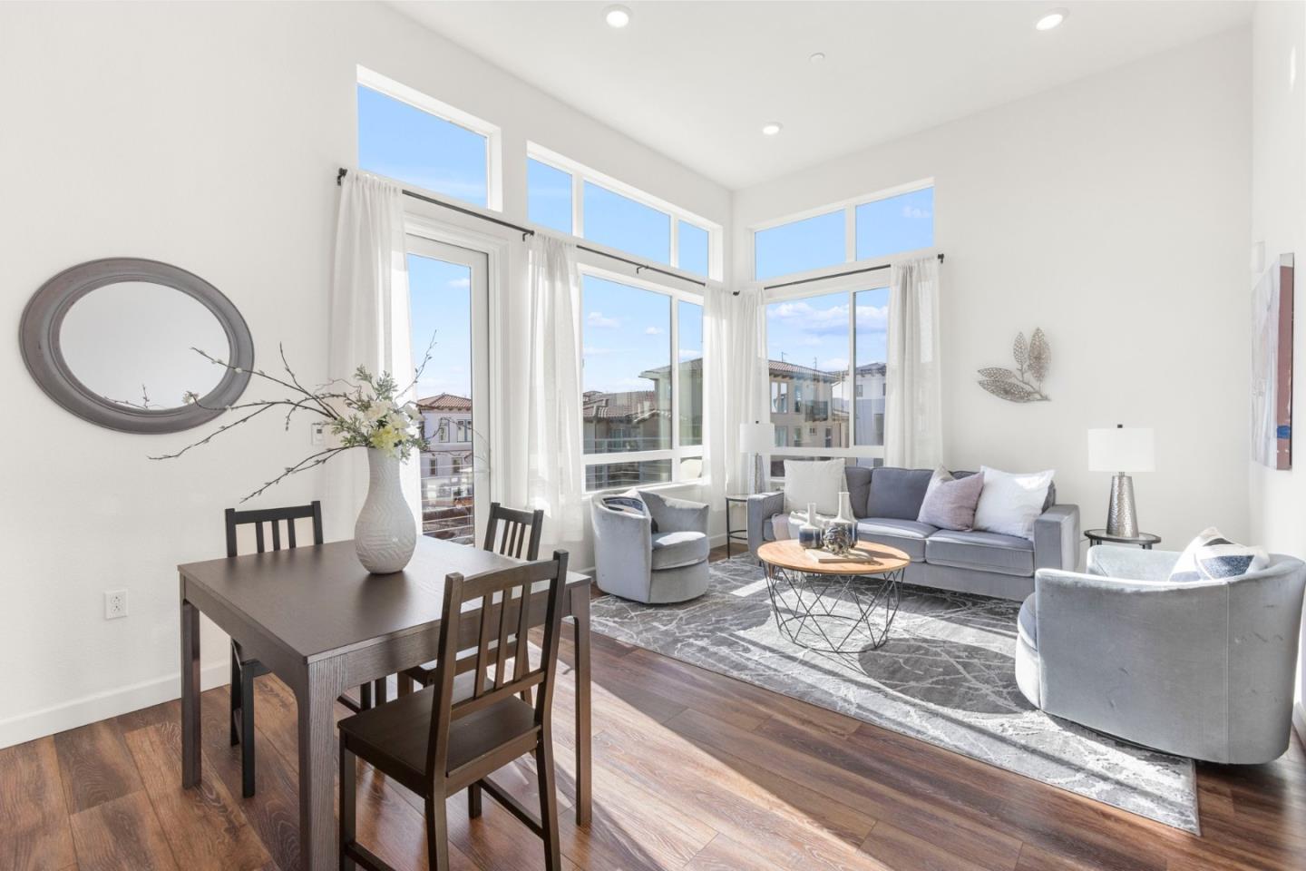 Newer construction! One level! Full of natural light! Incredible views! Does it get any better? Atop Communication Hill, this top-floor residence offers an all-on-one-level layout that maximizes space and comfort, and still feels brand new. With vaulted ceilings, discover an abundance of natural light streaming through expansive windows. The corner location enhances privacy with only one shared wall, provides additional windows, and offers incredible valley views. The open-concept living area seamlessly connects living, dining, and kitchen spaces, perfect for entertaining or a quiet evening in. The upgraded kitchen features pristine granite countertops, stainless steel appliances, and a gas cooktop. Bedrooms offer ample space, with two featuring large walk-in closets. Enjoy evenings on the Sky Terrace with panoramic views, a BBQ area, and cozy lounge spaces. Benefit from a private 2-car garage and easy access to highways 85/87/280/101, Caltrain, Light Rail, and corporate shuttles. Nearby conveniences include a large park, schools, malls, dining, shopping, and entertainment. Experience the perfect blend of modern luxury and practical livingyour next chapter awaits in this meticulously maintained and inviting home.