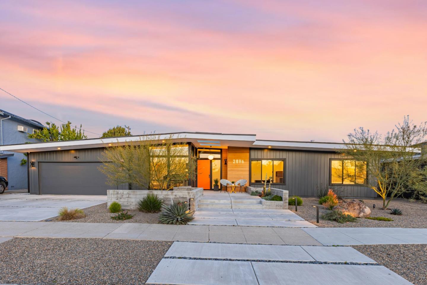 Mid-Century Modern Luxury! This home has 4 bedrooms, two of which are suites, plus an office all on one level (just a small step into the larger primary suite). The natural light from abundant windows and skylights bring even more enjoyment to the open floor plan of the two living spaces, dining area and modern kitchen. Hardwood floors warm the space as well as the custom tiled gas fireplace with remote. The kitchen has filtered water, two dishwashers, multiple skylights, two sinks and two ovens. There are quartz counters with a large center island and breakfast bar seating. Don't miss the walk-in pantry next to the door to the garage so you can bring your groceries right inside. Both of the suites offer heated floors, zero curb showers, walk in closets and access to the backyard. There is indoor laundry with sink and Miele appliances. Central A/C and LED lighting. The finished garage has EV charging and there is a large custom shed equipped with power in the rear of the home. Solar panels installed (owned not leased) on the roof in 2020. The beautifully landscaped yards offer space for dining and relaxing and a perfect grassy area for play and pets. Wonderful Willow Glen neighborhood close to shopping, dining, freeways and schools.