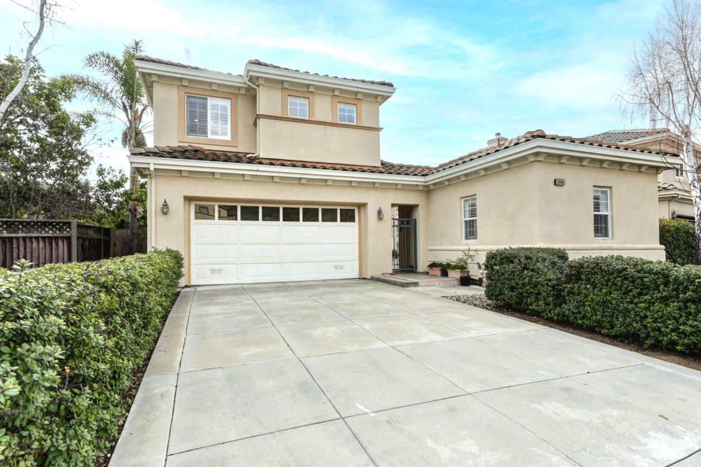 Welcome to this beautiful east-facing two-story Mediterranean home located within the prestigious resort-like community of Silver Creek Valley Country Club! This spacious and well maintained residence offers a harmonious blend of elegance and comfort, perfect for modern family living. Upon entering, you'll be greeted by soaring vaulted ceilings adorned with elegant chandeliers. The home features gleaming hardwood and laminate flooring throughout, creating a warm and inviting atmosphere. Expansive southern exposure windows and two sliding glass doors bring in an abundance of natural light, picturesque views and warmth of the winter sun. Thoughtfully designed motorized awnings in the dining room, family room, and primary bedroom provide both convenience and climate control. From the comfort of your backyard and primary bedroom, enjoy the community annual Independence Day fireworks display. Adding to its versatility, the property includes a spacious detached bedroom suite, ideal for in-laws, overnight guests or as a quiet home office. New HVAC and water heater. Within a short walking distance to top rated elementary school. Come and discover the unparalleled lifestyle that awaits you in Silver Creek Valley Country Club where comfort meets elegance and every day feels like a retreat!