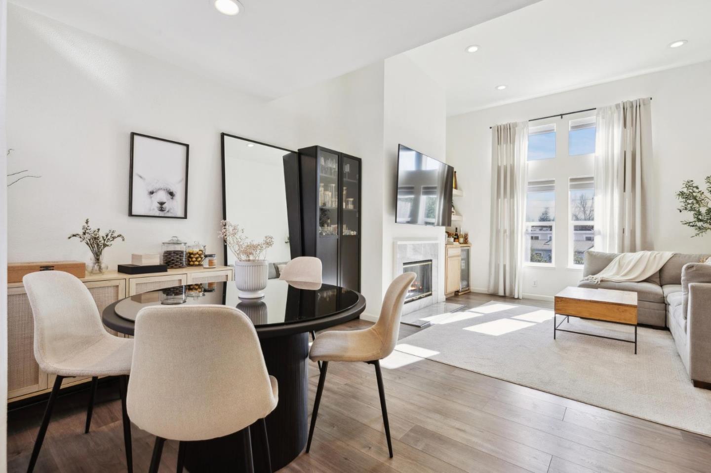 This beautifully updated top-floor condo, located in the highly sought-after San Mateo area bordering Burlingame, offers a spacious and modern living experience with impressive 11.5-foot ceilings. The open-concept design features expansive windows that fill the home with abundant natural light, creating a bright and airy atmosphere. The living and dining areas are complemented by elegant luxury vinyl plank flooring, cozy fireplace and recessed lighting throughout. The sleek kitchen boasts beautiful quartz countertops and stainless-steel appliances. Convenience is key with an in-unit washer/dryer. The property includes two deeded parking spaces in a secure, covered garage, with additional storage options available near the parking spots. The gated community ensures privacy and security. Just a short walk to a plethora of restaurants, shopping, and the Caltrain station, this location offers easy access to SFO, Highway 101, San Francisco, Silicon Valley, and beyond.