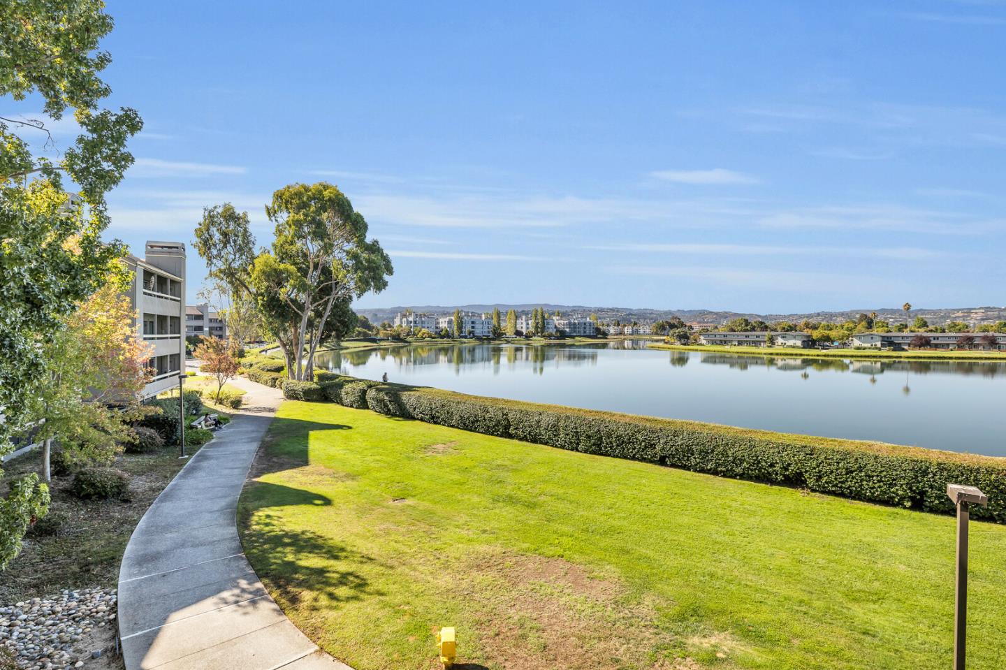 TROPHY WATERFRONT CONDO (END UNIT). Absolutely amazing, unobstructed views from 2 private balconies and from inside this meticulously updated unit. Beaming with light throughout, this is the trophy property you've been searching for providing comfort, privacy and abundant amenities.. Boasting 2 spacious bedrooms including Primary Suite with dual vanity sinks and walk-in closet. Updated gally Kitchen which flows seamlessly into the dining/living room with fireplace, and 2 balconies overlooking the lagoon. Full size, in unit washer/dryer with plenty of storage and additional storage closet down the hall. Community amenities include 2 swimming pools, tennis courts, Club House, RV parking and more. A serene retreat from the hustle yet conveniently located in a highly ranked school district near shopping, restaurants, public transportation and HWYs 101 and 92. Great for families, couples seeking home/work space with private separate office, or retirees looking to enjoy all that this community has to offer. Resort living awaits.