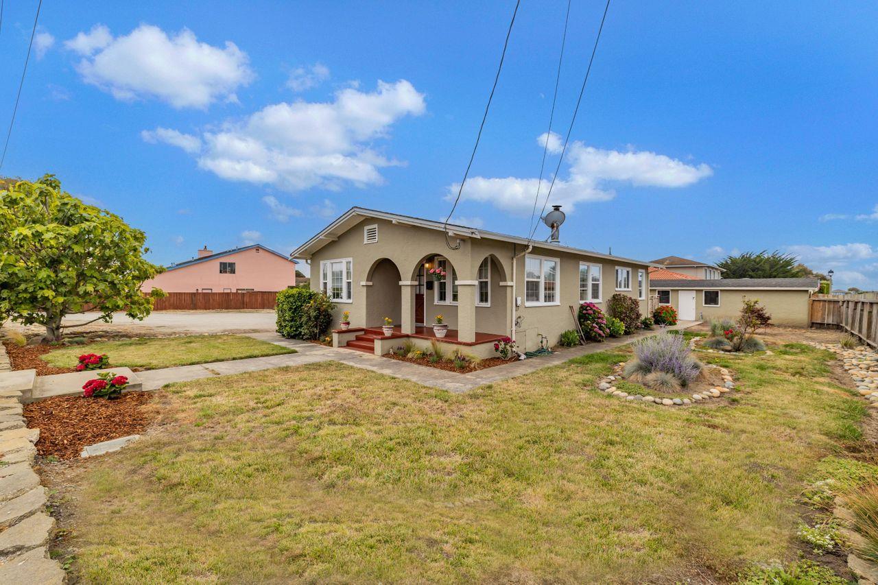 Near Scenic Venice State Beach, this rare listing also includes a separate additional parcel. Total combined land is approximately 13,900 square feet of level space, offering considerable unrealized opportunities. This Classic 1932 Beach House has two bedrooms and one bathroom, situated on a large approximate 8100 parcel with a detached garage and a great side yard garden. This approximately 1220 square foot home features modern vinyl windows and attractive, new, luxury vinyl flooring. A generous kitchen with breakfast bar, opens to a living/dining room combo area equipped with a cozy wood burning stove. There is also an Indoor laundry room and light filled bonus room/office or art studio. The rear deck and patio are ideal for coastal gatherings. Don't miss the impressive small outbuilding and be sure to investigate with the City of Half Moon Bay, the various potential ADU options. The adjacent vacant (separate ) parcel (APN 048-212-120) is approx. 5800 sf.. Combined or separate, the included vacant parcel creates many possible uses. Imagine having room for boats, RV's, or a workshop, etc. Close to Main Street, with its unique shops, art galleries, fine dining and near the scenic Coastside Trail for hiking or biking. Just blocks from one of the Coastside's nicest Beaches.