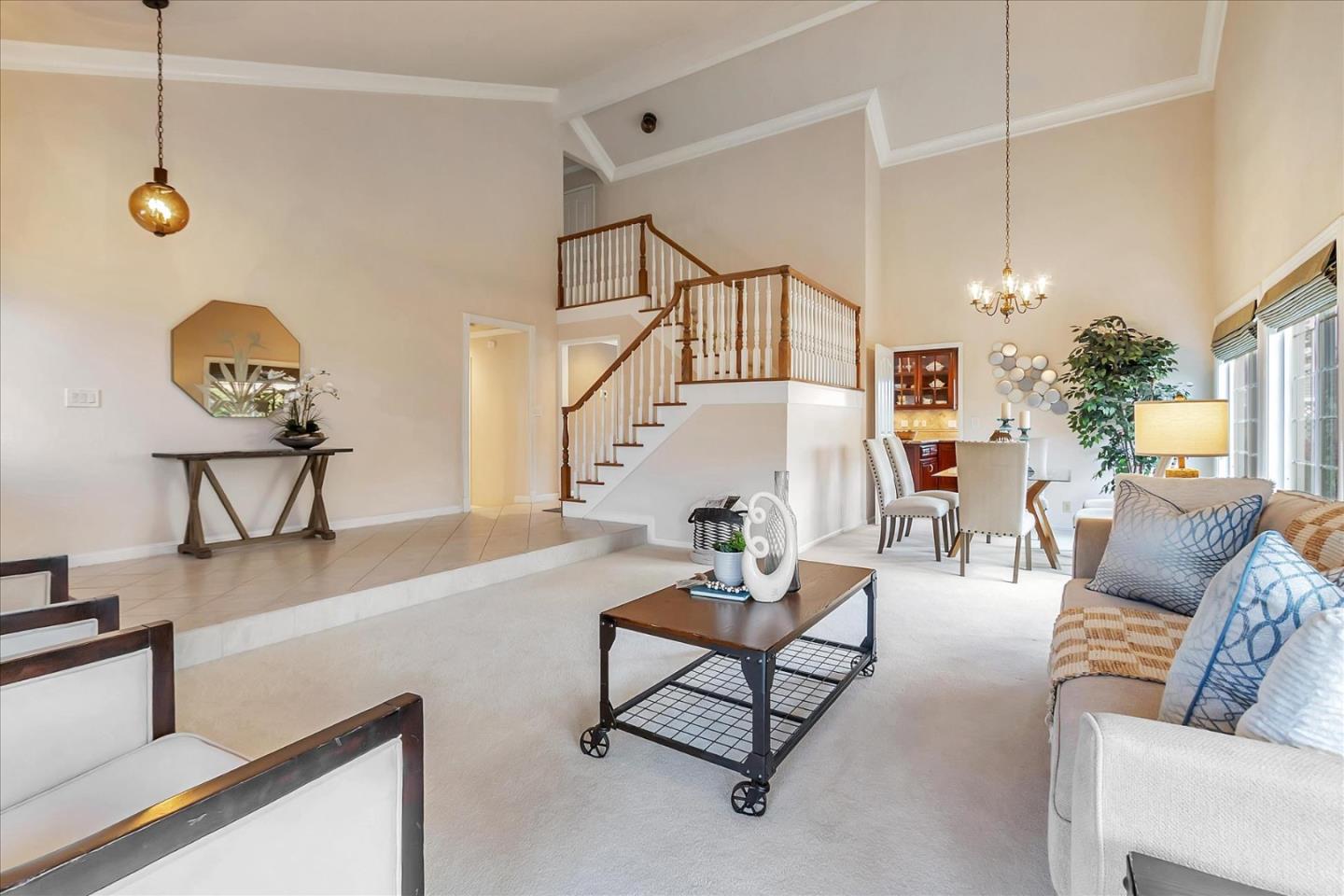 In the heart of Almaden Valley, this beautiful 5-bedroom, 3-bathroom home offers 2,465 sq. ft. of living space on a generous 8,250 sq. ft. lot. A grand entryway leads to a spacious living & dining area with vaulted ceilings. The gourmet kitchen boasts granite countertops, stainless steel appliances, a wine fridge, recessed lighting, & ceiling fan. The family room features a gas fireplace, ceiling fan & sliding door that leads to the spacious backyard. A large primary suite offers mirrored closet doors, a vaulted ceiling, & an ensuite bath with a walk-in shower. Most bedrooms have plantation shutters. There is also a downstairs bedroom & a full bath with a walk-in shower. Double pane windows, crown molding, a water softener, air conditioning & a battery backup for electricity enhance both the style & functionality. The drought-resistant front & backyard feature a charming gazebo & a pool, perfect for relaxing & entertaining. The driveway is accented with elegant pavers. Minutes from highways 85, 87, & Lake Calero, this home is near scenic hiking & biking trails & offers breathtaking views of Mt. Umunhum on the drive home. Assigned to top-rated Graystone Elementary, Bret Harte Middle, & Leland High, this is a prime opportunity in one of Almaden's most sought-after neighborhoods.