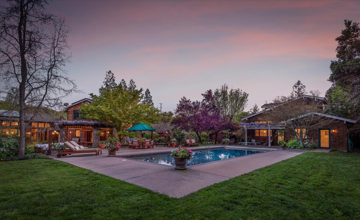 Extensively remodeled and move in ready. This home has 3-levels with 5 bed, 3.5 baths, a great room with chefs kitchen, large dining room & cozy sitting room...all opening to yard & pool. Need a home office, bookshelf lined library complete with desk, large family room, and a lower-level with space for a gym/game or media room/separate craft or homework center, large office with custom built-ins, (the lower-level has a private stairway & entrance). In addition there is a guest cottage with a full kitchen, living/dining area, 2 bedrooms, and full bath (separately accessible for pool area). The 1.25+/- ac. lot has been landscaped to perfection. It is a private, restorative environment that provides seasonal color, nourishment, room to play, & entertain. The home is embraced by the venue in a way that blurs the line between indoors and out. Every window frames lush vistas, the solar-heated pool, majestic redwoods, & level lawn The home has 2 entrances, ample extra parking, a 2-car garage, separate 1-car garage, plus a storage shed. The central Portola Valley location convenient to local shopping, Alpine Hills Swim & Tennis club, The Alpine Inn, excellent PV schools, & just 4 min. to Hwy. 280.