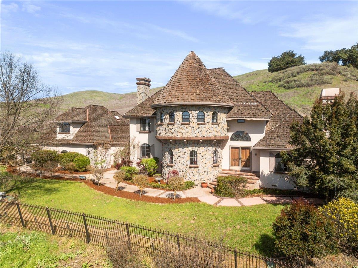 Discover luxury in the country with this striking custom-built home set on 10 acres in the exclusive Rancho Robles community. Enjoy sweeping views that highlight the natural beauty of the surrounding valley. The home offers formal living & dining rooms, a spacious family room, and a rounded conversation pit centered around a large stone fireplace. Striking wood beam ceilings, elegant herringbone-patterned solid oak wood flooring, and multiple fireplaces enhance the warmth and character of the main living spaces. The kitchen showcases plentiful cabinetry/counter space, all ready for your upgrades & modernization. Just off the grand entrance you'll find the elegantly curved library room which doubles as a bedroom. The main floor also features a second bedroom, full bathroom, and a conveniently located laundry room. The expansive master suite includes a cozy sitting area, fireplace, double walk-in closets, and an ensuite bathroom, offering the ultimate private retreat. Above the garage, you'll find additional living quarters with a separate entrance, featuring a spacious bedroom, full bathroom, walk-in closet, and a wet bar, ideal for guests. Polish, perfect, and bring your vision to life at this tranquil gem located just steps from Morgan Hill with access to top-rated MH schools.