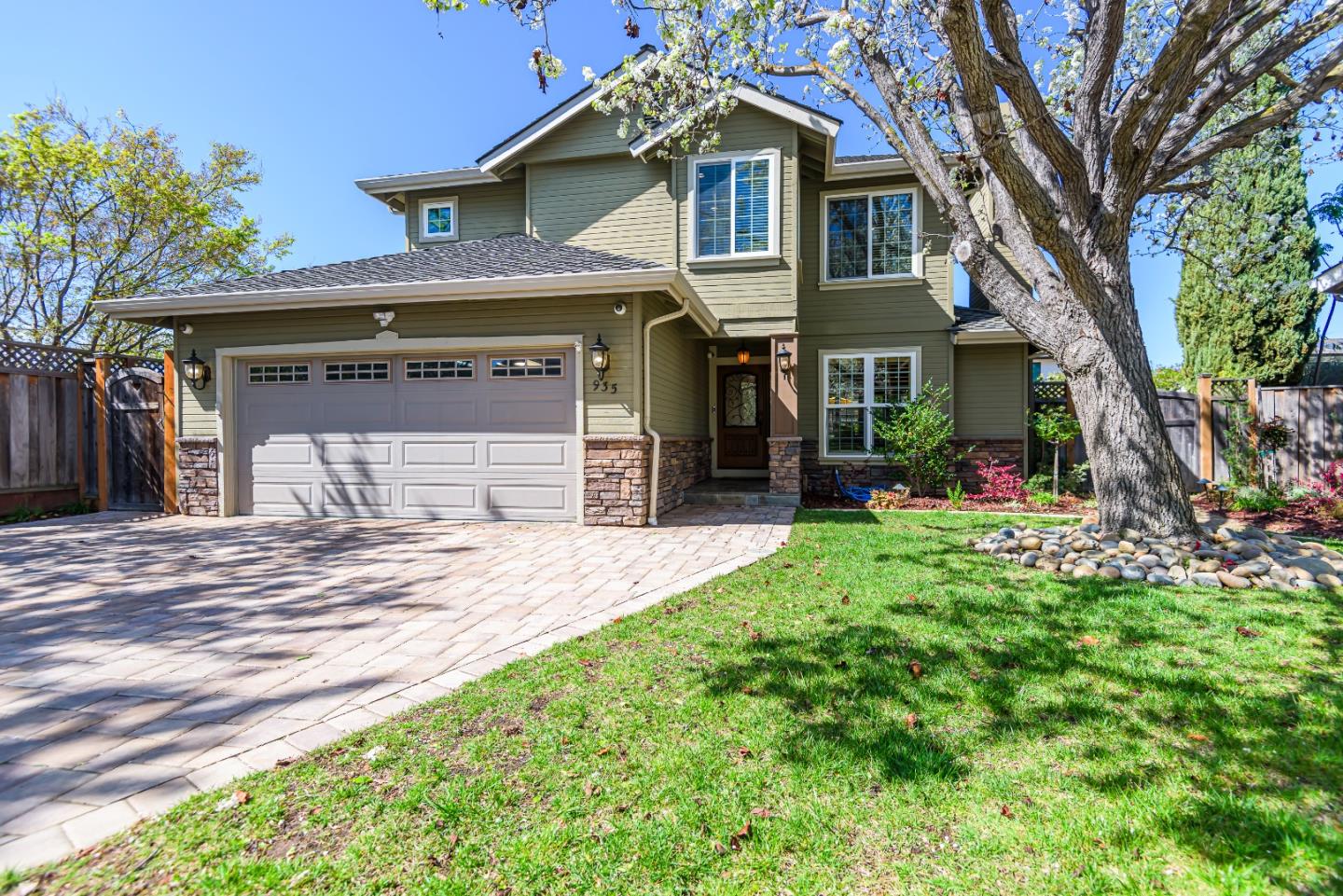 This beautifully upgraded home in a peaceful Campbell neighborhood offers 4 bedrooms and 2.5 bathrooms, blending luxury, comfort, and convenience. High ceilings and gleaming hardwood floors greet you upon entry. The sunken living room features a cozy gas fireplace, and the adjoining family room, also with a gas fireplace, creates a warm ambiance. The chef's kitchen is ideal for entertaining and flows easily into the family room and backyard. Sliding doors lead to a landscaped yard with a deck, manicured grass, a pond with a waterfall, and impressive exterior lighting. The master suite offers a private retreat and a spa-like bathroom with dual sinks, a walk-in shower, and a relaxing jet bathtub. Additional features include a full guest bathroom upstairs, a half-bath downstairs, high-end materials throughout, a home generator, private court, 24-hour surveillance cameras, and newly custom paving stone driveway. This home is move-in ready, with no need for updates. Schedule a tour to make this dream home yours!