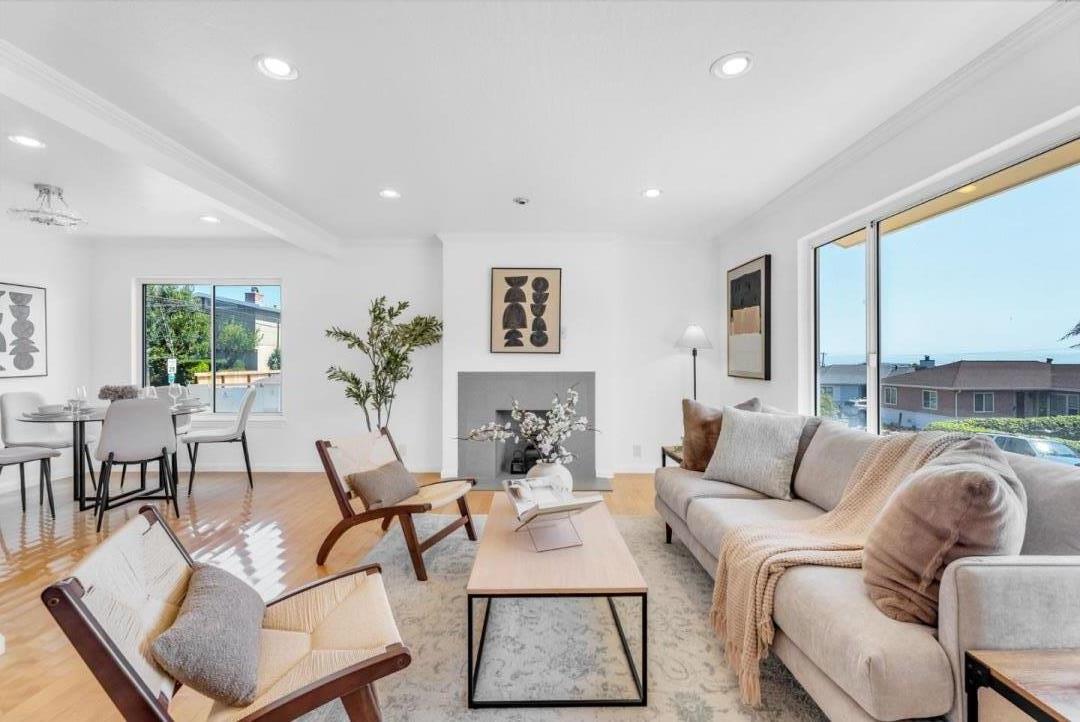 Welcome home to 422 Northwood Drive in the coveted Brentwood neighborhood of SSF! This renovated, move-in ready residence features an updated kitchen with new quartz countertops, freshly painted cabinetry with brushed nickel hardware, a new stainless steel dishwasher, and an oversized sink. Updated light fixtures and fresh, tasteful interior and exterior paint modernize this beautiful single-family home. Its corner lot location offers unique privacy and open views. Enjoy the ideal three-bedroom, two-bathroom floor plan, beginning with a spacious living and dining area highlighted by a fireplace and abundant natural light from large windows on every wall. Beyond the kitchen is convenient access to the washer and dryer in the attached two-car garage. Three bedrooms line the hallway at the rear of the home, each offering recessed lighting, large closets with built-in shelving, and access to the first bathroom, which includes a shower-over-tub configuration and a new modern vanity. The primary suite, added with permits in 2018, features tall ceilings, a private ensuite bathroom with a stall shower, and double doors that open to the private, fenced backyard. Ideally located, this home offers easy access to I-280, SFO, shops, restaurants, and entertainment of downtown SSF.