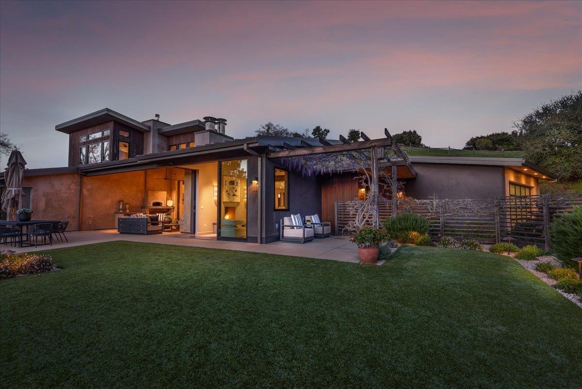 Contemporary masterpiece with spectacular Windy Hill views designed by architect Ana Williamson. Featuring steel I-beams, soaring ceilings create openness & strategically placed windows fill the space with light highlighting the natural setting. The modern open floor plan includes chef's kitchen with high-end appliances, custom Italian cabinetry & Dekton ceramic countertops. Floor to ceiling sliding Fleetwood glass doors make for easy indoor/outdoor entertaining, extending on to the covered patio with heated floors, fireplace, & Italian pizza oven. The primary suite upstairs has expansive views, walk-in closet & large chic bathroom. Built with fire safety in mind with a metal roof, no exposed eaves, fire sprinklers, owned solar & backup generator. Detached 770 sq ft guest house with full kitchen, 1.5 bathrooms & large bedroom. Bonus detached 350 sq ft workshop w/ extra storage provides a multitude of possibilities. Over 1 acre fully fenced with drought resistant Mediterranean native landscaping, mini orchard, ipe trellis with mature wisteria, 100 sq ft garden shed & raised garden beds. This thoughtfully designed luxury home offers privacy, stunning views, proximity to town, access to commute routes in Silicon Valley & serene hiking trails in the rolling hills of Portola Valley.