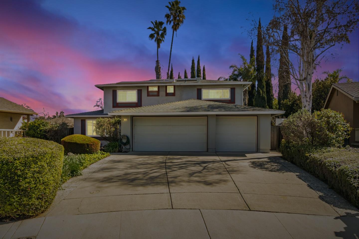 Nestled in a peaceful and highly sought-after cul-de-sac in the Berry Park neighborhood, this warm and cozy 5-bedroom, 3-bathroom home boasts numerous upgrades. Spanning 2,563 square feet, the well-thought floor plan features both a living room and family room that seamlessly connect to the kitchen. The large gourmet kitchen is equipped with custom rustic hickory cabinetry, granite countertops, a built-in wine cooler, and new oven/microwave combo and dishwasher. A guest bedroom is conveniently located on the first floor, complete with a fully renovated bathroom. Upstairs, the expansive primary suite includes an upgraded bathroom and large closet, three additional bedrooms share another beautifully renovated bathroom. The private, beautifully landscaped backyard is an ideal space for relaxing or hosting gatherings and is adorned with serval fruit trees like Plum, Mandarin-Orange, Cherry, Peach and more. Additional features of the home include an indoor laundry room, hardwood floors, dual-pane windows, a water softener, a leased solar system, 3-car garage and fresh paint throughout. This home is ideally located near Marshall Cottle Park, Valley Christian School, shopping, and offers easy access to freeways.