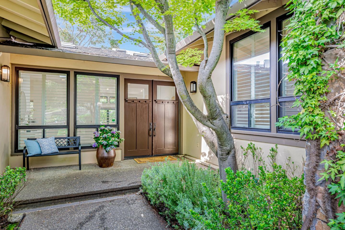 Don't miss this extensively renovated one-level home surrounded by gentle rolling hills and mature trees. Soaring ceiling, dozens of electric-operated skylights and floor to ceiling windows flood the interior with natural lights. The home features 3 spacious en-suite bedrooms plus a dedicated office. The versatile floor plan accommodates different family needs with ease. Local school, shopping and parks are just steps away. This residence truly combines the tranquility of nature with convenience of urban amenities.