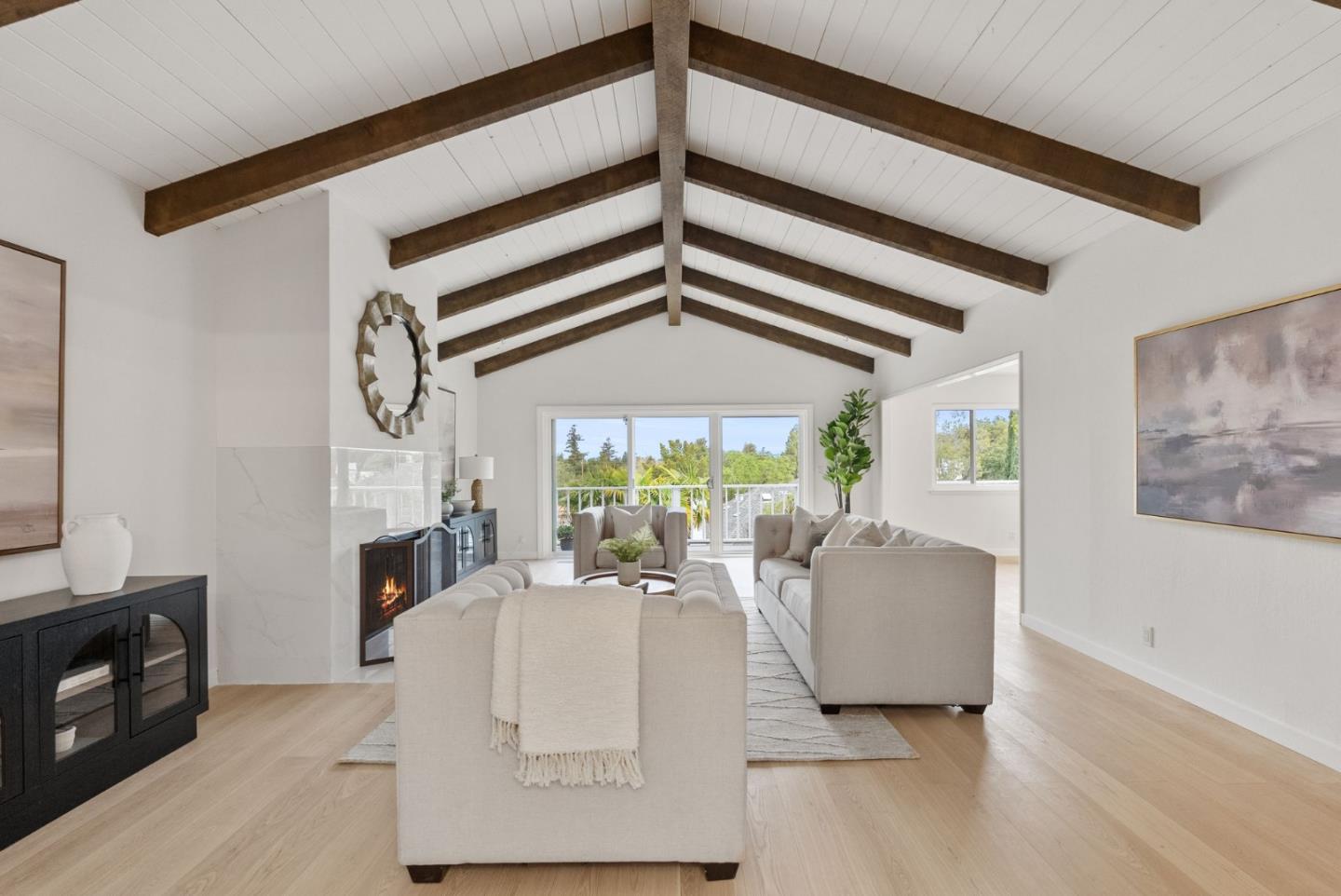 Luxury Auction! Bidding to start from $3,718,000! Nestled in serene & highly desirable Los Altos Country Club with top rated schools, this exceptional sunlit 4-bedroom, 3-bathroom sanctuary spans a spacious 2,868 SF, exuding contemporary elegance with spectacular new renovations and stunning views for tranquil enjoyment. The grand living room impresses with soaring vaulted ceilings and new gleaming white oak hardwood floors. Floor-to-ceiling windows invite an abundance of light, while a panoramic deck showcases golf course & verdant views. The open floor plan flows into the formal entertaining dining and the chef's kitchen boasting new custom cabinetry, quartz countertops, intricate tiling, top-of-the-line appliances, and a grand center island along with spacious informal dining. The home offers dual expansive primary suites with modern designer bathrooms and patio access with scenic views. The upper level includes a generously appointed second bedroom with an ensuite, while the lower level features another lovely bedroom, and a vast family room leading to the peaceful flat backyard. Features owned solar, LED lights, & 2-car garage. Exceptional location in a tranquil, tree-lined neighborhood, minutes from Los Altos Village, tech hubs, Stanford, award-winning schools, & 280.