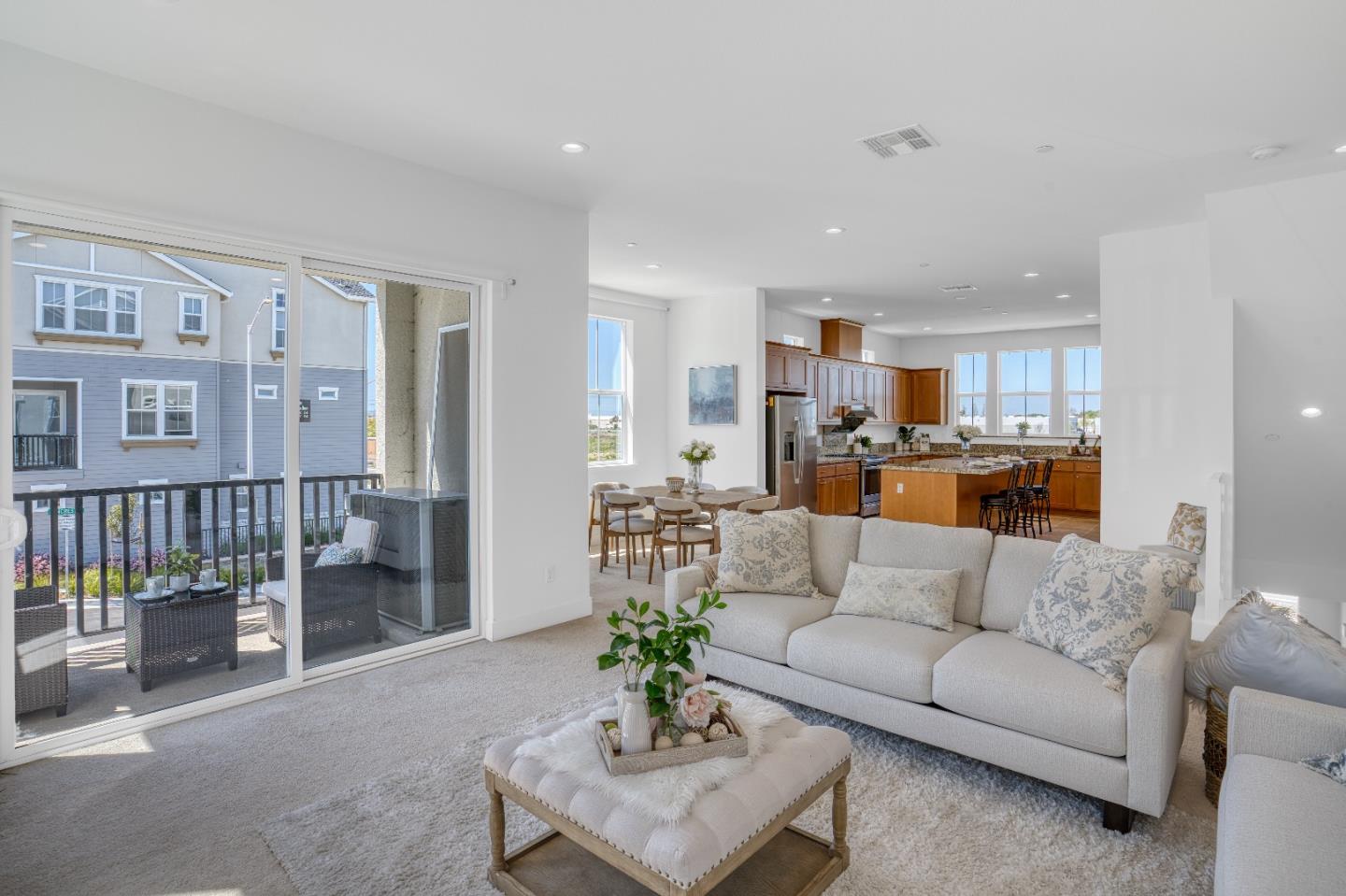 Welcome to this beautiful home nestled in a newer constructed community, this residence features beautifully landscaped surroundings, high ceilings, and an efficient, modern design.This highly sought-after corner unit is bathed in natural light throughout the day, enhancing every room. This home features a brilliant design offering 4 bedrooms, 3.5 bathrooms, with a balcony area and a total of 2 parking spaces in the garage. On the main level, the spacious living and dining areas seamlessly flow into the gourmet kitchen, which features quartz countertops, stainless appliances, and premium cabinets for abundant storage. Top floor bedrooms offer enhanced privacy and quiet for all to enjoy. The primary suite includes a large walk-in closet and spacious en-suite bath, while the first-floor bedroom with a private bath is perfect for guests or multi-generational living. Solar is available, significantly reducing electric costs. Prime location for commuters with easy access to Dumbarton Bridge, I-880, and major East Bay, South Bay, and Peninsula employers like Meta and other tech companies. Don't miss this move-in-ready gem!