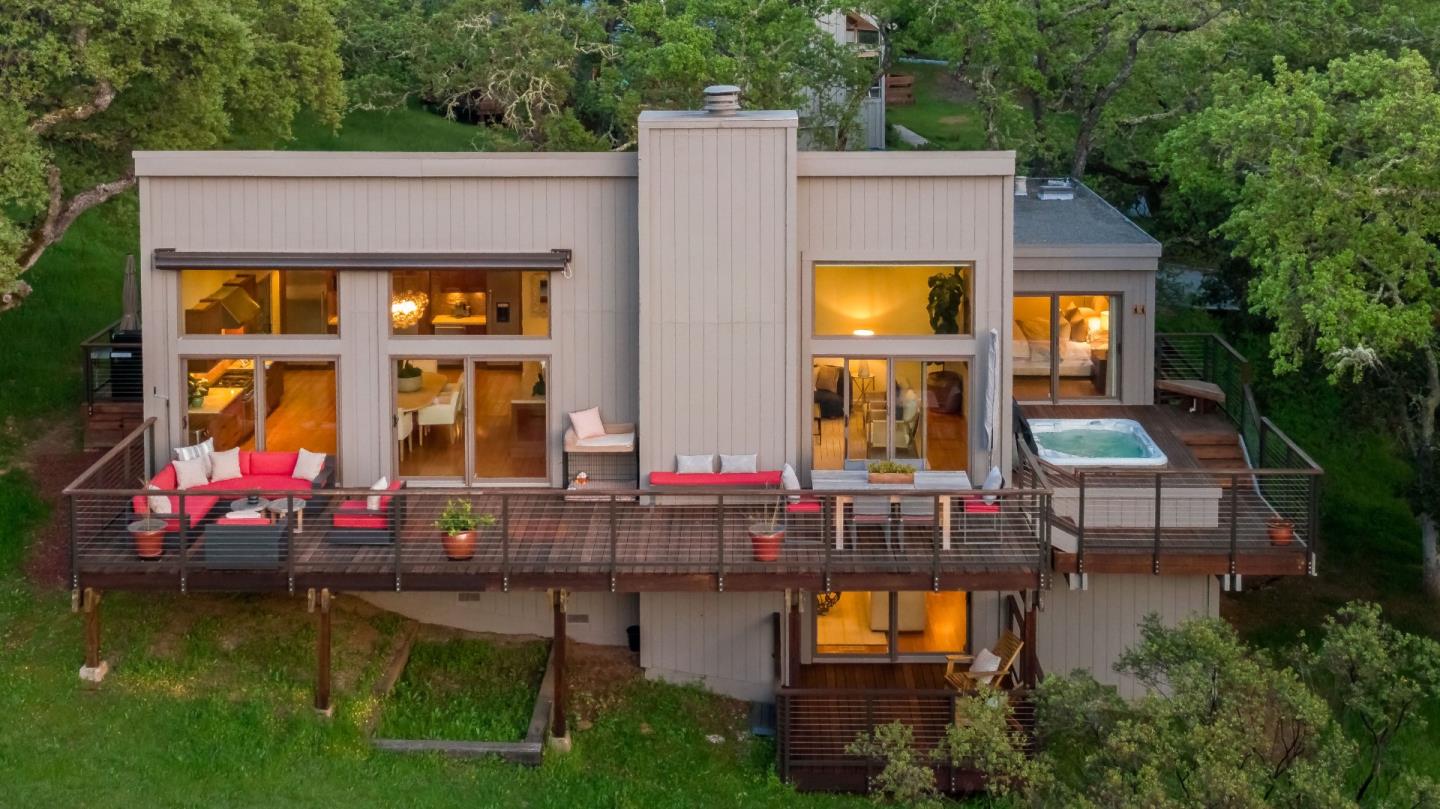 Set within the highly desirable Portola Valley Ranch, 20 Foxtail is a beautifully designed 4-bedroom, 3-bath residence that seamlessly blends architectural character with the tranquility of its natural surroundings. Thoughtfully crafted, this home is an entertainer's delight with soaring vaulted ceilings in the spacious living room and adjoining kitchen. The gourmet kitchen offers sleek built-in refrigerator and freezer units, generous counter space, and ample room for a full-sized dining table ideal for everyday living and entertaining. The primary suite is a peaceful retreat, featuring a skylit ensuite bath with dual-sink vanity, large walk-in shower, custom California Closets, and direct access to the deck and hot tub perfect for unwinding under the stars. Walls of sliding glass doors throughout the home create a natural flow to multiple outdoor decks, where sweeping views of the Western hills invite effortless indoor-outdoor living. Enjoy access to the outstanding PV Ranch community amenities including swimming pools, tennis courts, fitness rooms, vineyard, vegetable garden, clubhouse, play area, dog park, and miles of scenic hiking trails and open space. All of this serenity is just minutes from local shopping, Stanford Nexus, and award-winning Portola Valley schools.