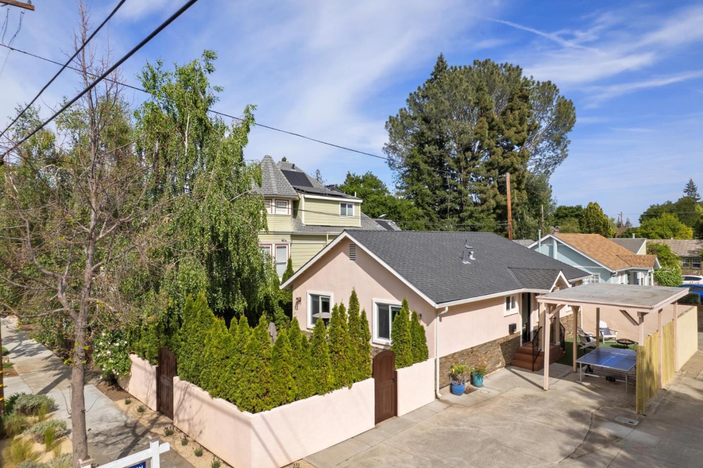 A rare gem in coveted Crescent Park, this fully remodeled 3 bed, 2 bath Palo Alto home offers privacy, charm, and walkability - just minutes to downtown and University Ave. Tucked on a private road and cul-de-sac, it boasts a serene, enclosed yard with a paved dining area under a 10x10 cantilever umbrella and a lawn shaded by a birch tree. Framed by 8-foot thujas, stucco walls, and wooden gates, the yard features drip irrigation on both sides and native landscaping. Renovated to the studs in 2014, with a new sewer line in 2024, the home includes central heat/A/C, whole-house water filtration, and a fast DC EV charger. The primary suite offers an en suite bath, walk-in closet, Electrolux W/D, and California Closet shelving. Two bedrooms include closet dividers; the second bath has a stone walk-in shower. Kitchen features stainless Samsung, LG, and GE appliances. A 200 sq ft attic provides storage. Added perks: ethernet, ceiling fans, recessed dimmers, built-in bookcase with glass shelves and granite wet bar, 5-speaker ceiling audio. Outside: storage side yard, 6-bike rack, synthetic lawn, and 2 off-street parking spots (1 covered). Walk to Addison Elem; bike to Greene & Paly (buyer to verify eligibility). Expansion potential for ~230 sq ft 2nd-story suite (city approval required).