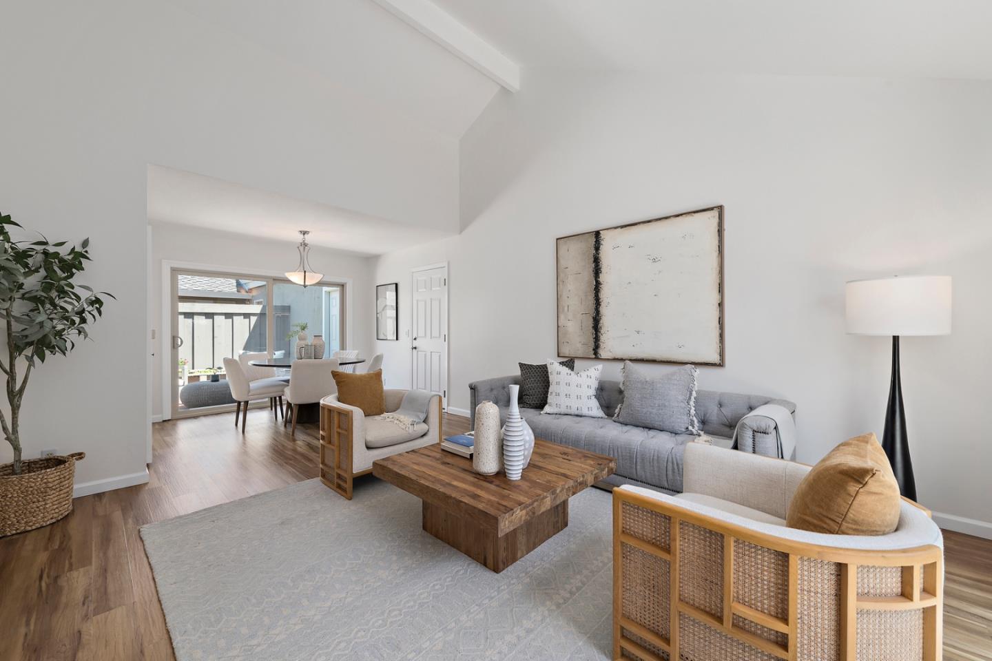 Tucked within the sought-after Los Gatos Village complex, this elegant 3-bedroom, 2-bath townhouse offers an ideal balance of comfort and convenience! A gated courtyard garden provides a picturesque entry to this stunning single-story dwelling. Discover a breathtaking interior with stylish proportions and a flowing layout. Vaulted ceilings and expansive windows flood the living room with natural light, while the wide hallways create an inviting experience throughout the 1,218 sq ft home. Updated wood laminate flooring adds warmth and contemporary appeal for effortless entertaining or a relaxed evening in. The galley-style kitchen features handsome cabinetry, gleaming countertops, and a brand-new stove. From the breakfast nook or dining alcove, take advantage of glass sliders that open to the secluded patio with a pergola. Central forced air heating, A/C, a water softener, and an attached 2-car garage provide the practicality youd expect from a residence that delivers for any lifestyle. Los Gatos Village invites you to enjoy perks like the swimming pool, and clubhouse. With an array of shops and restaurants within easy reach, your day-to-day essentials are close by. Come see how beautifully your next chapter could unfold!