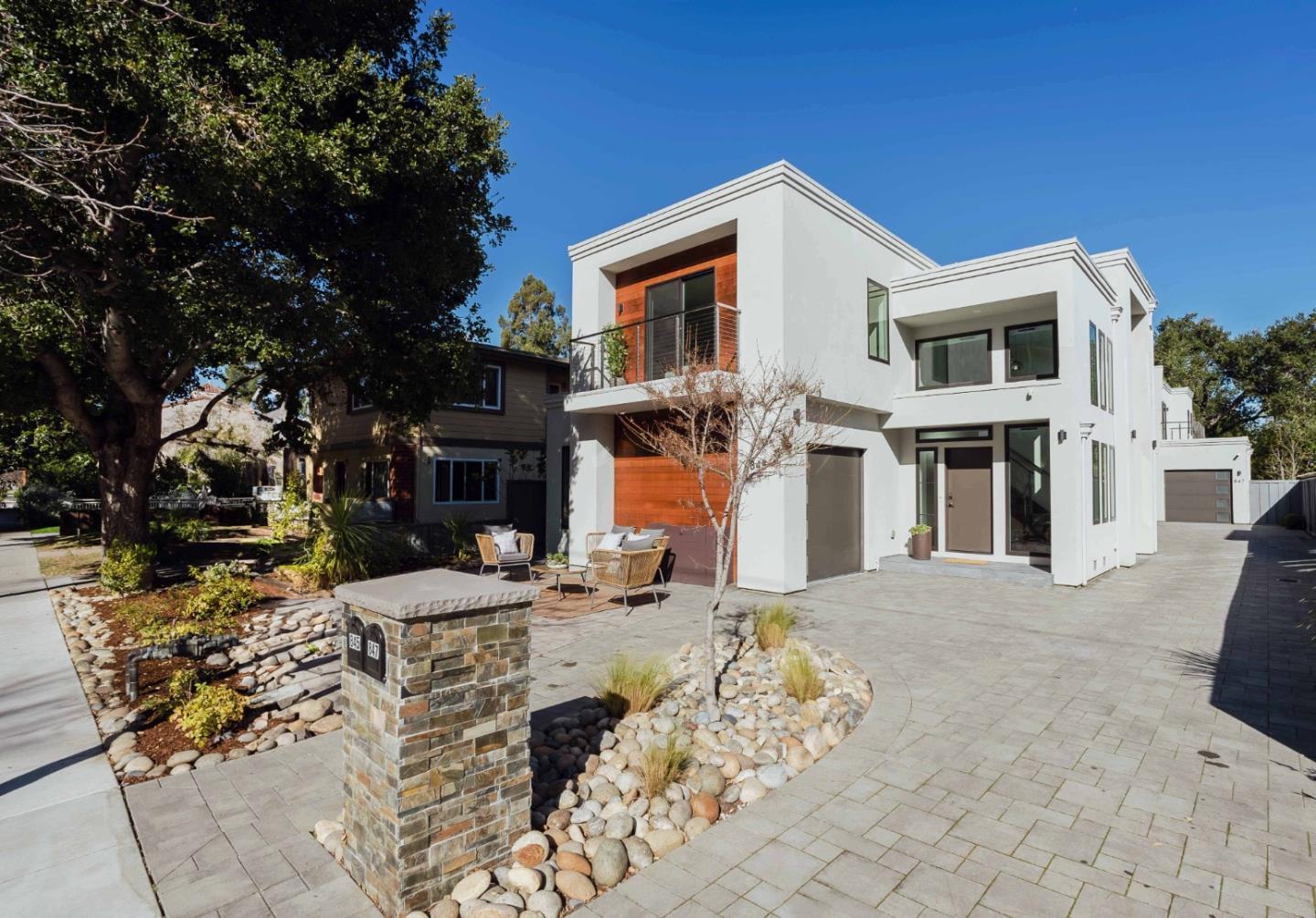 Welcome to this newly constructed (2021), contemporary home located in the heart of Palo Alto, just blocks from restaurants, shops, Whole Foods, farmer's market and top-rated Palo Alto schools. Filled with natural light, this home features a beautifully appointed chef's kitchen as well as a flexible floor plan offering multiple options for private and quiet spaces. The kitchen features stainless Thermador and Bosch appliances, custom cabinetry and a sleek breakfast bar. Adjacent to the kitchen is a flexible common area for dining or gathering. Also on the main level is a private & spacious en-suite; it is a comfortable family room or quiet, generous-sized office as well. The upper-level primary suite is luxurious and private, featuring a balcony with sliding glass doors, a customized walk-in closet, and an upscale bathroom. Completing the upper level are two additional bedrooms, another full bathroom and a laundry area with washer/dryer. The fully fenced backyard also has two adjustable cantilevered umbrellas and provides private and serene outdoor living space. Additional features include tile and engineered European oak floors, custom window coverings with several remote-controlled shades, a chic powder room and an attached one-car garage plus one additional parking space.