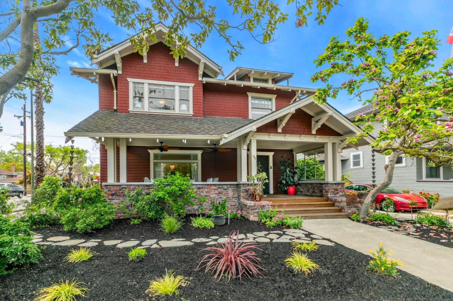 First time on the market in 23 years, an iconic, well cared, 1914 Swiss Chalet Craftsman nestled in the tree-lined Naglee Park neighborhood - downtown San Jose. This remarkable home blends Old World charm with modern comforts. Spanning over 3,275 sqft. on a generous 6,400 sqft. corner lot, this residence features 4 spacious bedrooms, 2.5 bathrooms, and a designed garden. The inviting front porch welcomes you into a grand living room adorned with a box beam ceiling, paneled wainscoting, a wood-burning fireplace, and elegant pocket French doors leading to a sunlit dining room with window box seats. The spacious family room, complete with a mudroom with direct access to the detached two-car garage, maintaining a classic, functional flow throughout. The bright farmhouse kitchen showcasing soapstone countertops, a Wolf range, a butlers pantry, an eat-in nook. Sliding door open to a serene English cottage style garden with beautiful arbor perfect for entertaining, or relaxation. Upstairs, the primary suite is a true retreat with high ceilings, windows on three sides, a spacious sitting area, and a walk-in cedar closet. Three additional large and airy bedrooms provide ample closet space. Close to SJSU, shops, and amenities, this is a rare opportunity to own a cherished piece of history!