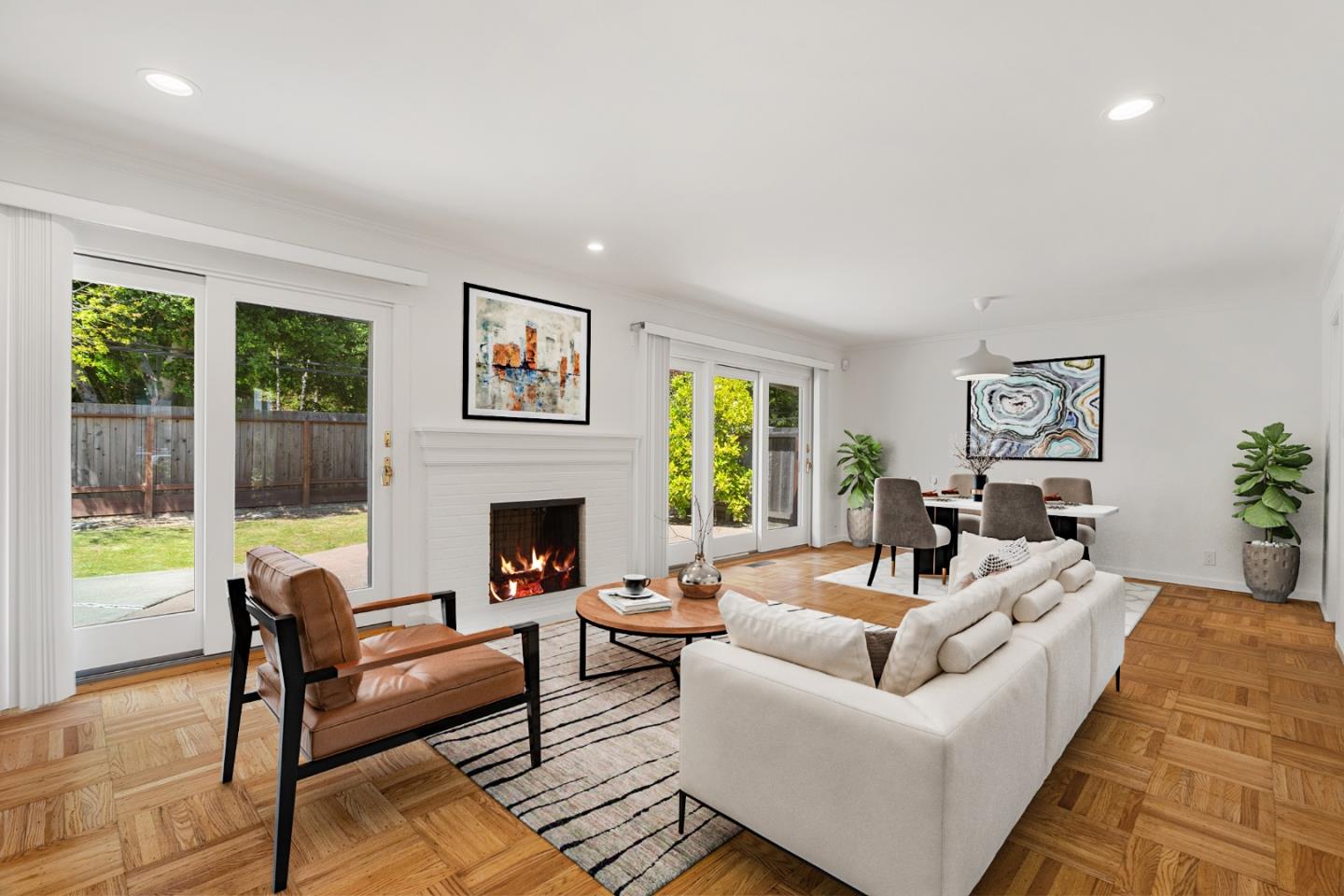 Welcome to 1320 Ridgewood Drive, a Millbrae Meadows gem! On a level lot with an enclosed front patio and a private backyard, this darling home spreads over a well scaled one story living area. The main living space is a seamless flow between an open living-dining area and an updated, modern kitchen. The wood burning fireplace, parquet hardwood floors, louvered windows are all signatures of mid-century charm. Three bedrooms and two tiled baths are located in the left wing of the home. The laundry facility is conveniently located in the kitchen area. Improvements included kitchen, baths, roof, furnace and vapor barrier in the crawlspace. Meadows Elementary School, downtown Millbrae, freeway access and BART are moments away.