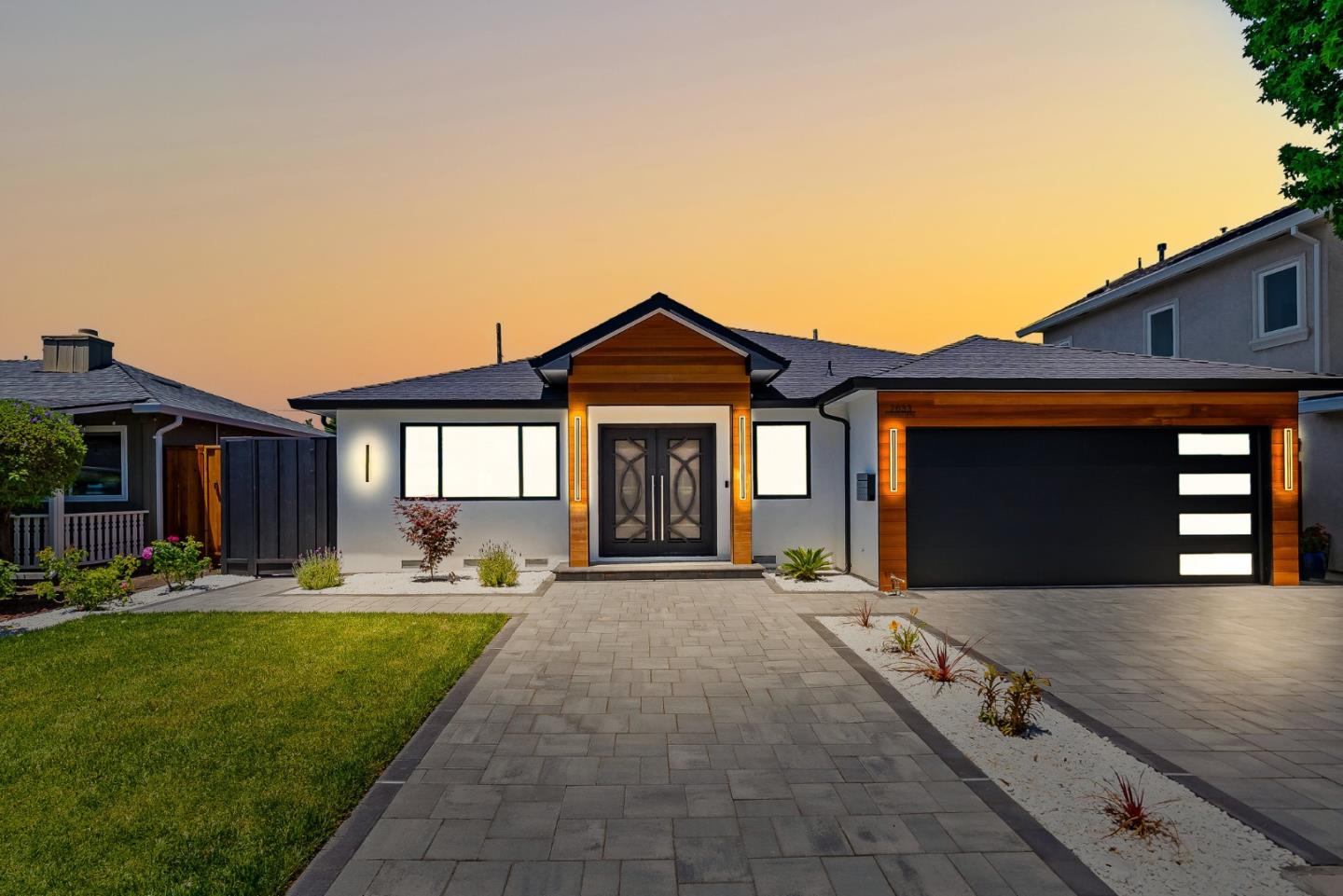 This reimagined modern masterpiece features an 865 sqft permitted extension, making it effectively an almost brand-new construction thats completely move-in ready with 4 bedrooms and 3 bathrooms. Step inside to an open-concept layout with soaring coffered ceilings, sleek finishes, and abundant natural light. The gourmet kitchen impresses with high-gloss cabinetry, quartz countertops, an oversized island, and premium appliancesperfect for both daily living and entertaining. One bedroom includes a private en-suite bath, ideal for guests or extended family, while the luxurious primary suite offers two walk-in closets, a spa-like bathroom, and its own kitchenette for a boutique hotel-style retreat at home. The bathrooms showcase designer tilework, elegant lighting, and sophisticated finishes throughout. Additional upgrades include Cat6 wiring, a whole-house water softener, built-in sound system, a cozy fireplace, EV charger in the garage, and a gas line in the backyard for those who wish to install their own built-in BBQno propane needed. A tranquil, landscaped backyard completes the home. Located near NVIDIA, Westfield Valley Fair Mall, Levis Stadium, and major commuter routes, this residence offers luxury living in a prime Santa Clara location.