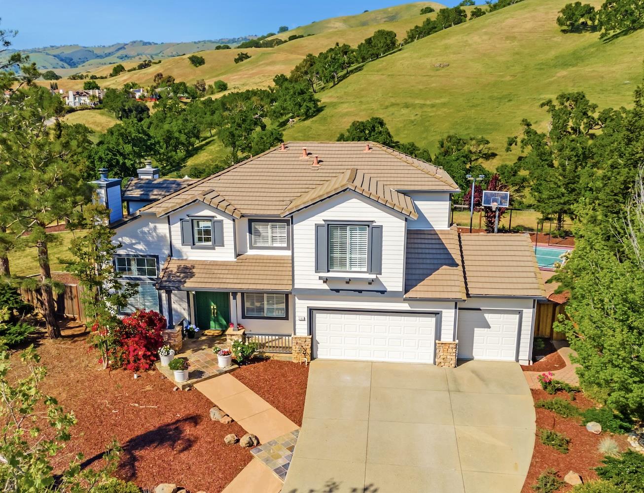 Welcome to this stunning 5-bed, 3.5-bath home tucked in a quiet cul-de-sac in the prestigious California Oak Creek community. Backing onto Silver Creeks rolling hills on over 17000 sq ft lot, it offers privacy, space, and scenic views. Inside, enjoy a bright open layout with soaring ceilings, abundant natural light, and multiple living areas, including a formal living room and dining room, cozy family room with fireplace. Remodeled kitchen with quartz countertops, newer cabinets, island, and pantry. The gorgeous expansive backyard is completed with sports court with light, Gazebo, matured rose bushes. Whether you are hosting guests or enjoying a quiet moment, this private oasis provides the perfect backdrop. A spacious sunroom adds flexible space for a gym, playroom, or studio. The main-level en suite guest bedroom/full bathroom downstairs is great for guests or home office. Upstairs features the primary suite with serene views and three additional bedrooms and bathroom. Energy efficient home comes with leased solar panels, EV charge point, 3-car garage with storage galore and top-rated schools Silver Oak Elementary, Chaboya Middle, and Silver Creek/Evergreen Valley High option area.