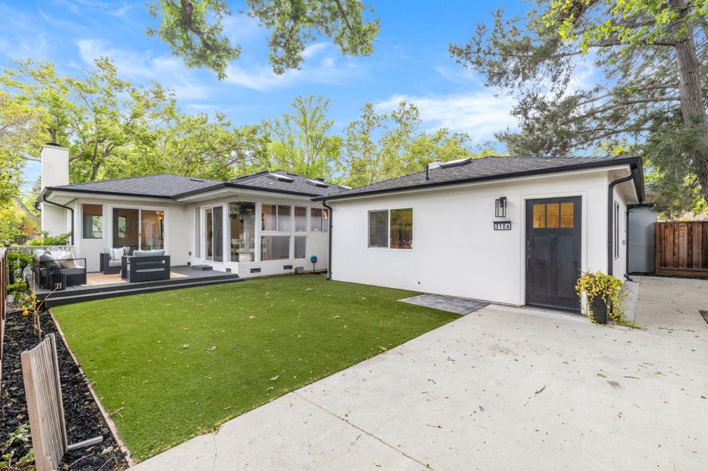With a total of ~1,900 square feet, this is California living at its best with an floor open floor plan, abundant natural light and vaulted ceilings. This property offers a renovated ~1,366 square foot single story main home with 2 spacious bedrooms and 2 full bathrooms PLUS a ~534 square foot detached ADU/guest house with living space, a full kitchen, washer & dryer, one bedroom and a full bathroom.. An expansive gourmet kitchen is accented by stainless steel appliances and ample cabinet space. Floor to ceiling windows highlight the dining area with easy access to the inviting backyard and dining patio. The primary suite offers extra room for a work from home space overlooking the front yard. The separate ADU entrance offers an ideal setup for a rental opportunity. Smart home features include Tesla solar panels, EV charger, NEST system plus home audio capabilities. Excellent Palo Alto schools. Spectacular corner lot location near Peers Park, Stanford University, Town & Country shopping center, restaurants on California Avenue and Palo Alto High School.