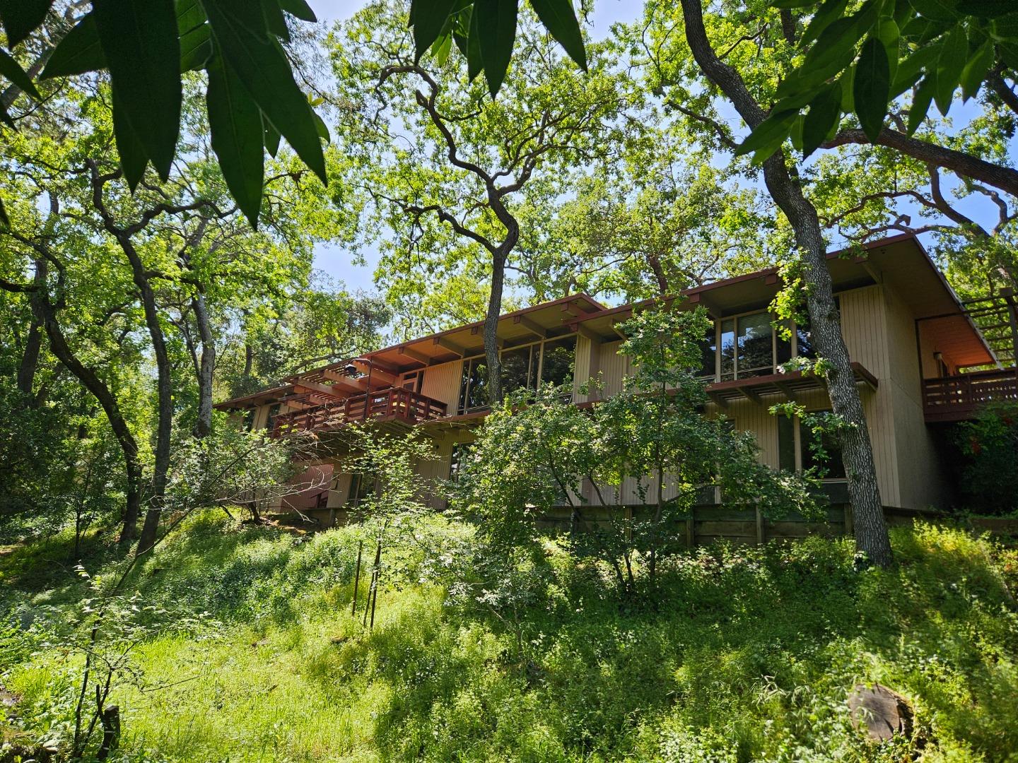 Price Reduced $100,000. Tucked away in a peaceful Monte Sereno cul-de-sac, this Frank Lloyd Wright-inspired home blends timeless architecture with natural serenity. Ideally located with a walking path to downtown Los Gatos and just moments from Bachman Park, this 4-bedroom, 2-bathroom residence sits on nearly half an acre and offers 2,436 sq ft of thoughtfully designed living space. Enjoy a unique reverse floor plan featuring the primary bedroom on the main level and three additional bedrooms downstairs, optimizing privacy and views. Floor-to-ceiling windows frame sweeping vistas and a tranquil backyard stream. Rich tongue-and-groove heart redwood paneling and custom details throughout reflect the craftsmanship of the original owner-builder. Located in the highly acclaimed Los Gatos School District, this rare offering combines architectural inspiration, nature, and convenience in one of the area's most sought-after neighborhoods. A tremendous opportunity to gain access to this school district and neighborhood, which is just minutes from downtown. This home is often compared to the Eichler/Mid-Century Modern style, with plenty of room to add on, expand, fix up, and improve... or move in and enjoy today. Visit and see for yourself what a special secret this home is.