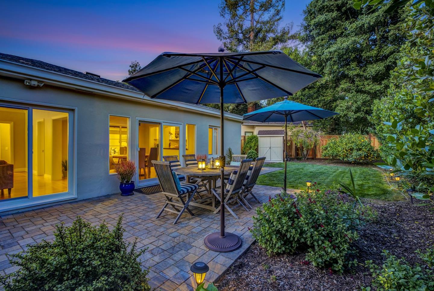 Experience this charming home tucked away on a desirable cul-de-sac in the immaculate Willows neighborhood. This adorable 2-bedroom, 1-bath bungalow features an open floor plan with a spacious living room, built-in shelving, a wood-burning fireplace, and large windows that flood the space with natural light. The updated custom kitchen includes stainless steel appliances and a bar area that opens to the dining space, flowing seamlessly to a large private backyard. Sitting on a 5481 SF lot, the yard is a perfect blend of gorgeous landscaping with paver patio space great for entertaining. A versatile guest bedroom doubles as an office or retreat, while the spacious primary suite offers a peaceful setting. Additional features include a large full bath with tub and shower, hardwood floors, dual-pane windows, heat pump heating/ AC and an attached one-car garage with stackable washer/dryer and storage. Conveniently located near top-rated Menlo Park schools, vibrant local amenities, neighborhood shops, Willows Oaks Park, Silicon Valley tech hubs, commuter routes, and Highway 101. Don't miss this incredible opportunity to call The Willows home!