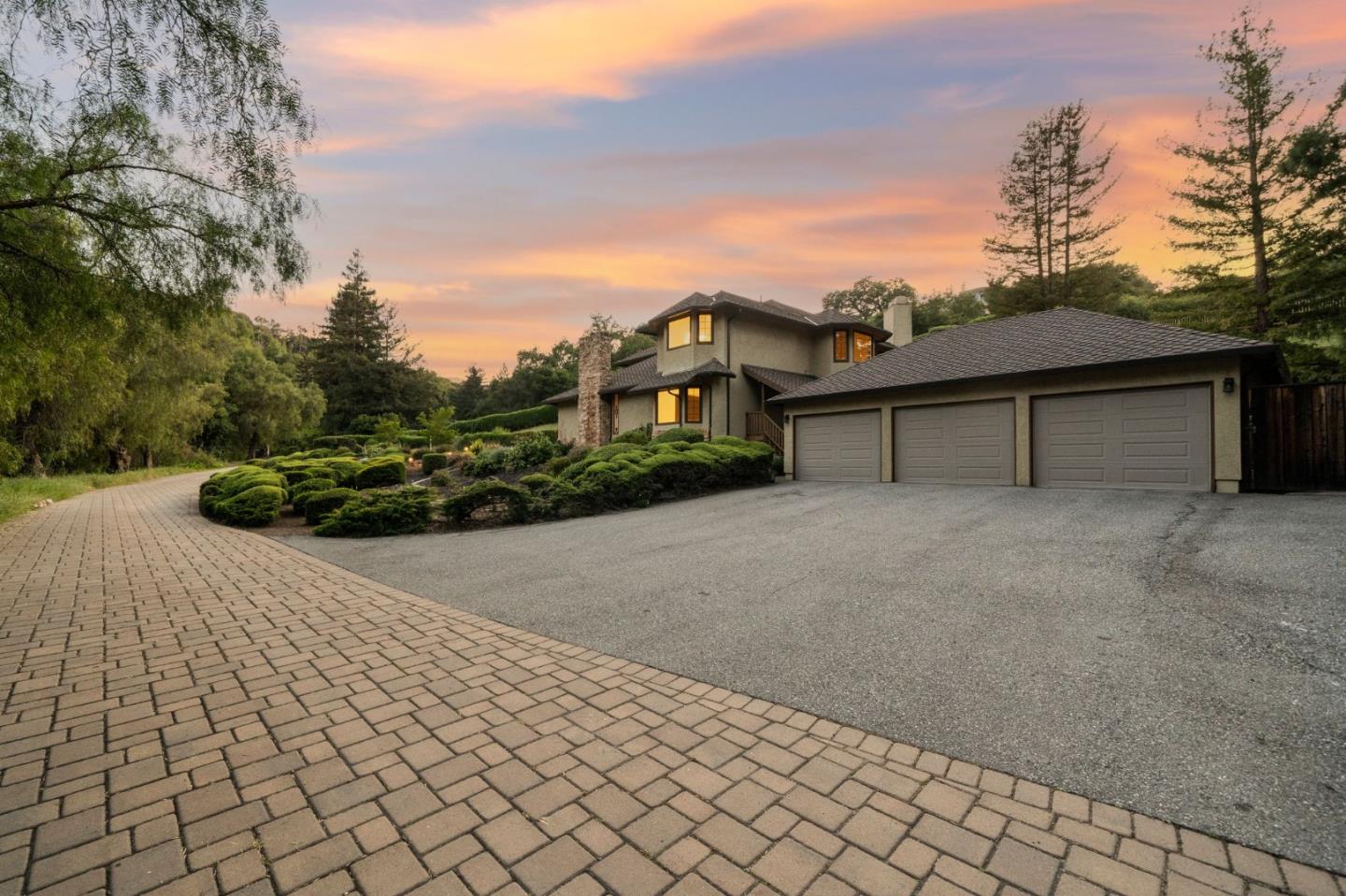 Nestled in the scenic town of Los Altos Hills, this custom residence blends the timeless warmth of lodge-inspired architecture with the clean lines of California contemporary design. With striking stone accents, soaring rooflines, & expansive windows that frame the surrounding natural beauty, this home offers a seamless connection to its tranquil, landscaped setting. Step inside to find open, light-filled living spaces, rich wood detailing, & a thoughtful floor plan designed for both relaxed living & sophisticated entertaining. The main floor offers an expansive layout featuring a spacious living room with soaring ceilings, a formal dining room, a kitchen/family room combination with a cozy breakfast nook. A large private office provides ideal work from home flexibility or 5th bedroom. Just off the entry, you'll find a generous flex space room with built-in cabinets making it ideal for a library or game room. Upstairs has four bedrooms accompanied by a versatile loft area which can be used as a playroom, media space, or 6th bedroom. The front approach welcomes guests with tiered pathways & native plantings, while the inviting covered porch, sparkling pool, offers a charming space to unwind. Perfectly situated in a quiet enclave of Los Altos Hills and just minutes to downtown LA.