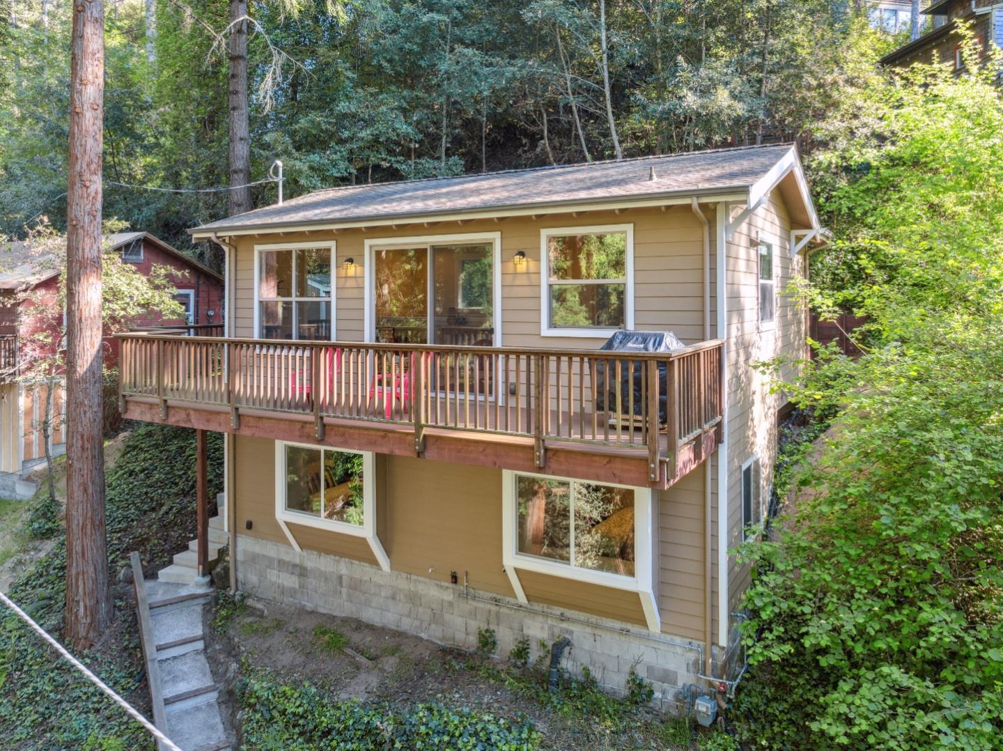 Nestled in the quiet and community-focused neighborhood of Mount Hermon, 21 Forest invites you to experience tranquility and natural beauty. This thoughtfully designed 2-bedroom, 2-bathroom home features a well-planned layout with excellent separation of the common areas from the sleeping quarters, ensuring both comfort and privacy. Upstairs, expansive windows and sliding glass doors bring in bountiful natural light, highlighting tall ceilings and stunning views of the towering redwoods. The wraparound deck provides the perfect setting to sip your morning coffee while soaking in the soothing sounds of rustling leaves and chirping birds. For nature lovers, the homes ideal location offers quick access to Henry Cowell and Fall Creek for hiking and mountain biking, while the beautiful beaches of Santa Cruz are just a short drive away for sun and surf. Conveniently close to commuter routes, shopping, dining, and nightlife, this home perfectly blends peaceful living with modern convenience.