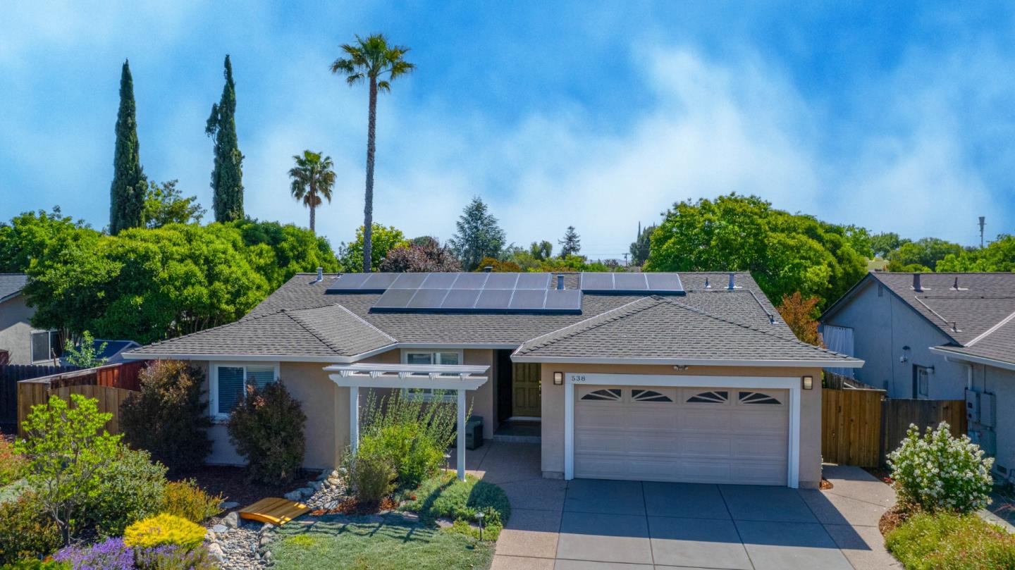 This home is arguably the nicest in the neighborhood. Attention to detail combined with elegant design features, both interior and landscaping, make this the ultimate for move-in-ready living. Situated in the middle of this wonderful Southwest Livermore neighborhood with wide streets and paved sidewalks, there is plenty of off- and on-street parking, including a wide side yard sufficient for RV or boat. This is the prettiest home inside and out. Gorgeous drought resistant landscaping surrounds the home. Thoughtfully upgraded open floor plan that lends itself to extremely easy living. Inside is inviting with solid oak floors and a chef's kitchen with high-end appliances. The versatile floor plan includes a Murphy bed/office combo and generous storage throughout. The primary bedroom sliding door opens to the backyard and spa. Owned solar panels and battery backup power keep the lights on. Outdoor living is comfortable with mature trees, custom pergola, fountains, and spa in a serene, bird-friendly setting with ideal orientation for morning sun and afternoon shade. Just two miles from downtown dining, theater, shops, and farmers market, with quick access to top schools, parks, and freeways. This home blends comfort, convenience, and charm in the heart of Livermore.