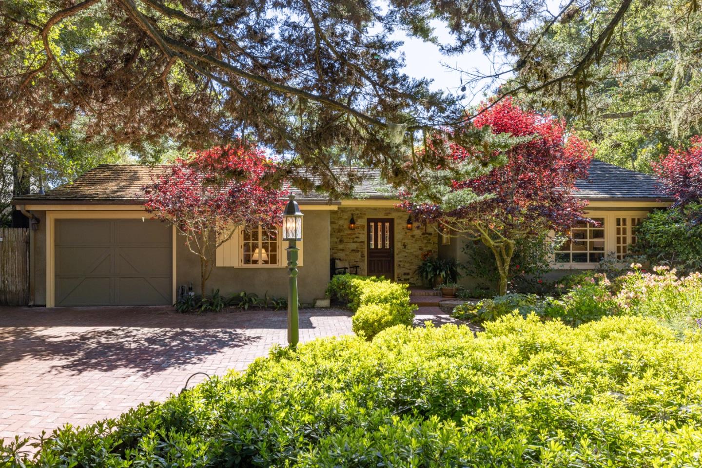 Welcome to this enchanting Carmel cottage, a rare single-story gem nestled behind a private gate on a serene .24-acre lot. A formal front porch and charming courtyard invite you into a world of elegance and tranquility. You will appreciate the timeless quality and attention to detail of this extensively remodeled property. Vaulted ceilings, dual-pane windows and skylights flood the space with natural light, radiating comfort with a soft color palette and soothing energy. The heart of the home is a chefs gourmet kitchen, with French country cabinets, high-end appliances, generous pantry and magnificent eat-in island. The luxurious primary ensuite features a walk-in closet and full bath, while two cozy fireplaces add warmth and elegance. Enjoy garden views from nearly every window. Three sets of French doors open to meandering brick patios, seamlessly blending indoor and outdoor living. The sprawling grounds are a secret garden lover's dream - manicured shrubs, wisteria, roses, camellia, ivy and privacy hedges, on irrigation, with tranquil views of forested mountains. An attached garage completes this peaceful retreat. Located just minutes from boutique shopping, fine restaurants and world-famous beaches, this is the luxurious Carmel sanctuary you have been waiting for.