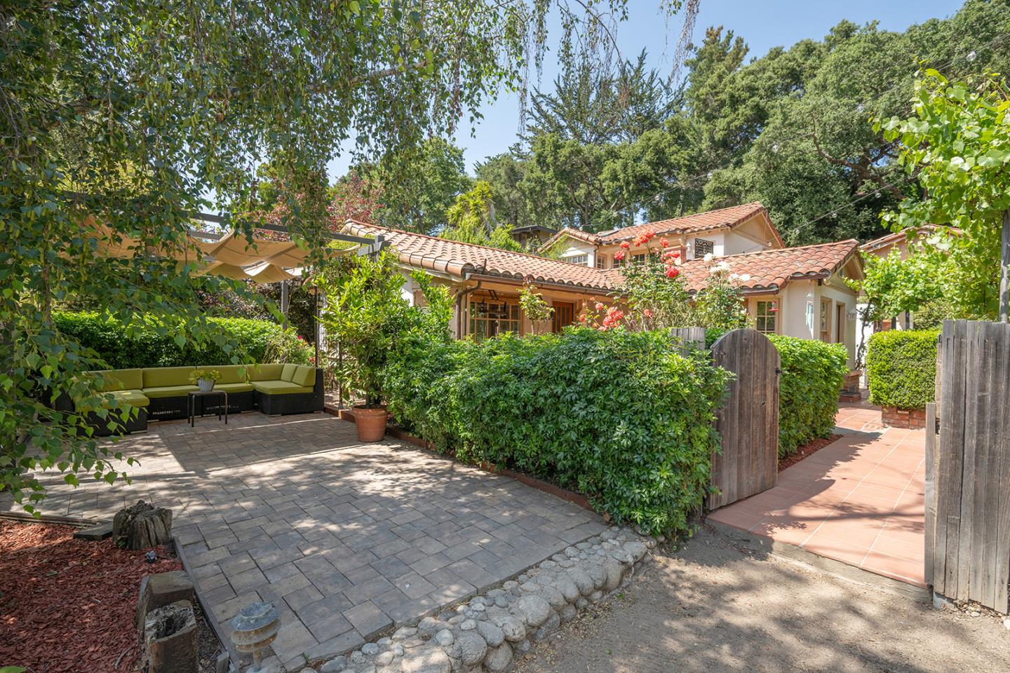 This lovely Mediterranean inspired home is situated in a serene Carmel Valley neighborhood, just moments from Garland Park, the Carmel River, Tularcitos School, and the village. Set on over a quarter-acre, the approximately 1,446 sq. ft. main house features two bedrooms, two bathrooms, hardwood floors, and two indoor fireplaces. The primary bedroom includes a private balcony with beautiful mountain views. A detached guest house studio adds approximately 360 sq. ft. of additional living space and includes its own bathroom ideal for visitors or a private studio. The property boasts multiple outdoor patios, an outdoor fireplace, three outdoor sheds, established fruit trees, and an enchanting garden. This home combines comfort, charm, and an unbeatable location to offer the best of Carmel Valley living.