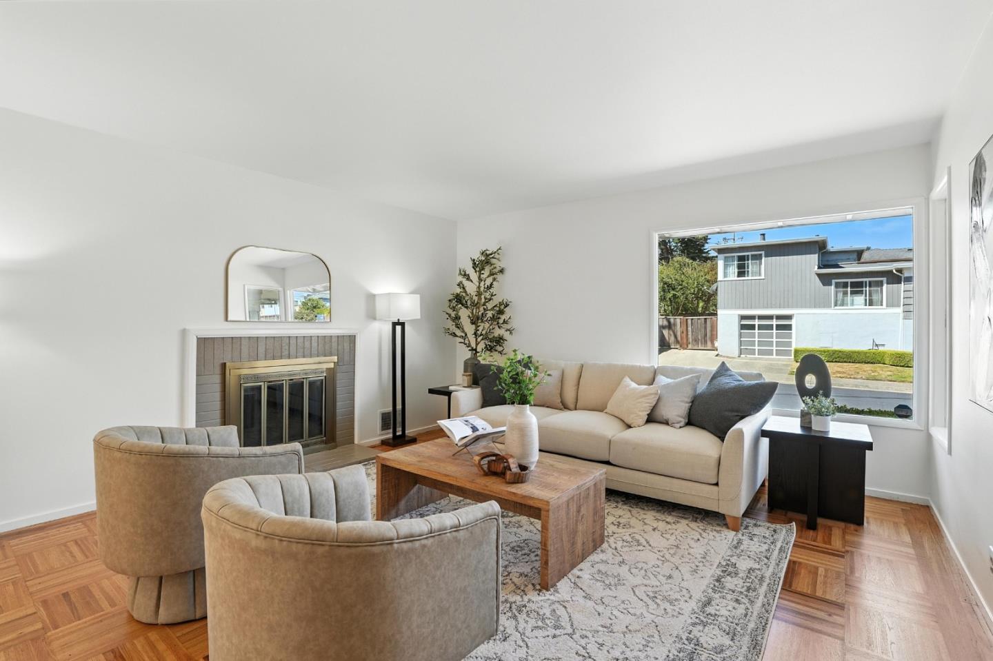 Welcome home to 381 Granada Dr, this move-in-ready 3-bedroom, 1.5-bathroom &1-bonus room home is located in the Avalon Park of South San Francisco. Thoughtfully refreshed with refinished hardwood floors, new carpet, new vinyl tile flooring & fresh interior paint throughout. Step inside & enjoy the natural light filled living room & dining area featuring a cozy fireplace & sliding glass doors that lead out to the generous backyard, perfect for indoor-outdoor living & entertaining. Bonus room with large windows & a closet makes an ideal home office, studio, or extra bedroom. Just beyond the kitchen, you'll find convenient access to the washer & dryer in the attached 2-car garage with plenty of extra storage space. The backyard is a standout feature, with garden beds & plenty of space for patio furniture, outdoor dining & summer BBQs. Upstairs, find 3 bedrooms, full bathroom with a shower over tub & new sink vanity & additional half bathroom. This unique layout creates a comfortable separation between private living spaces & the main areas for hosting & everyday gathering. Easy access to I280 for an easy commute up & down the Bay, close to major Biotech Employers, SFO Airport, 3 Costcos & multiple shopping centers such as Westborough Square for shops, restaurants, cafes & more.
