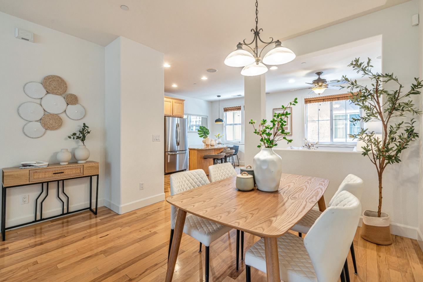 Luxurious Toll Brothers Townhome w/2 Private Suites in the highly sought out City Park community in Tasman Crossing! Bonus room downstairs, great for home office or gym! Hardwood floors throughout the main living level, warm paint & loads of Toll Brother upgrades such as decorative bath tiles, window molding, 8' doors & elegant exterior facade w/ paved front yard, excellent for outdoor entertaining. Soaring Redwoods give a feeling of seclusion with easy access to shopping, freeways, downtown Sunnyvale & more! Open Living, Dining & Kitchen concept, w/ granite counters, newer appliances & breakfast island! Separate Family Room off of Kitchen w/ample cabinetry. Oversized Owners suite w/WIC, jacuzzi tub, shower & dual sinks! Spacious 2nd Jr Suite located upstairs! Walk in closets in both bedrooms. Community Clubhouse. Steps from Seven Seas park, coffee, grocery, VTA & more! Located near Amazon, Apple, LinkedIn, Google & more! A great home for tech commuter!