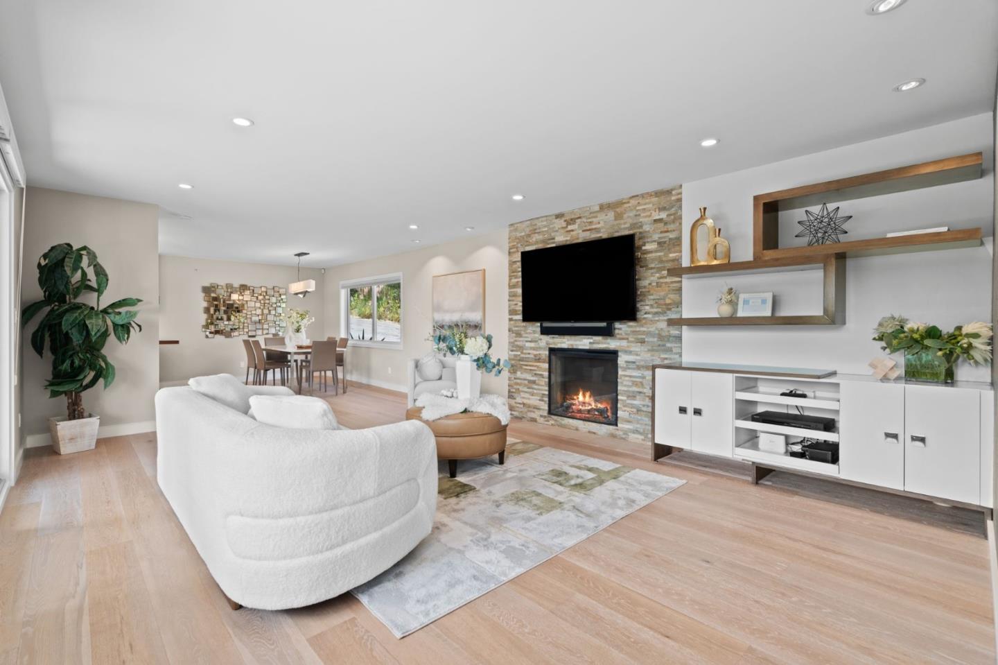 PRIVACY abounds this stunning, split-level home set on a tree studded 16,000 sq ft lot in Millbrae Highlands with a connection to nature. Boasting serene canyon and bay views, this home has been meticulously remodeled with attention to details. The main level is an open-concept, seamlessly integrating living, dining, and kitchen areas, highlighted by picturesque windows, wide plank wood floors and a fireplace with an ornate stone facade. The professionally designed kitchen features all stainless steel appliances including a 6-burner gas oven range, custom crafted cabinets and a central island. A half-level up are three bedrooms, including a primary suite, two brand-new baths, and newly refinished hardwood floors. Downstairs, the family room with a wet bar and a remodeled guest bath is ideal for entertaining. An adjacent, permitted studio, with its own entrance and full bath, offers versatile uses, and can be reintegrated into the family room. Enjoy outdoor living w/multiple levels of deck space, accessible from the kitchen & family room. The 2 car garage features a full wall of storage cabinetry and an epoxy floor. Enjoy a thriving downtown, Saturday's farmers market & Millbrae's highly regarded schools.