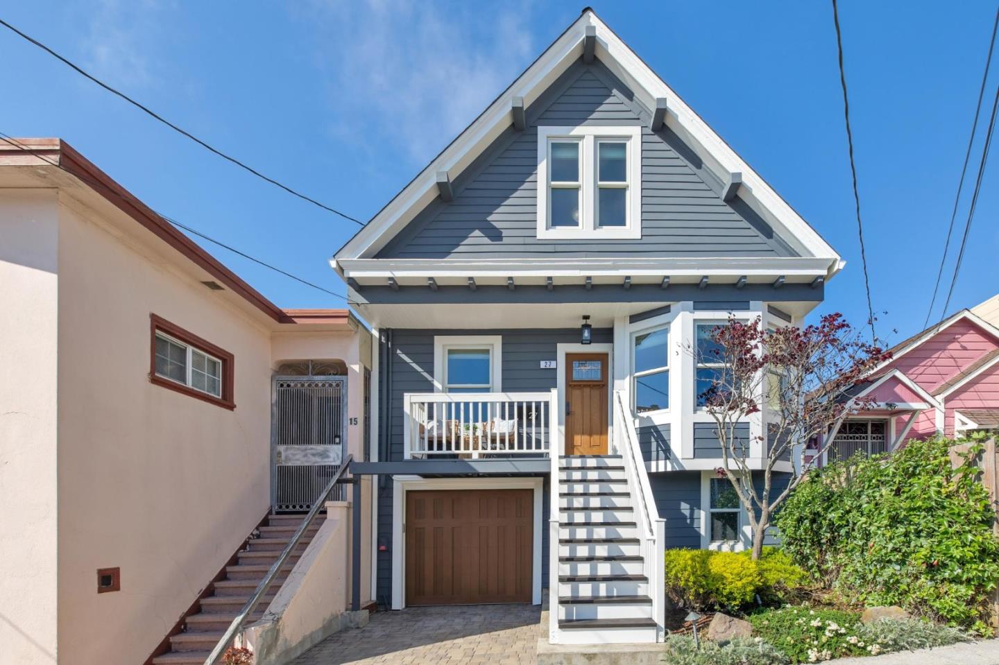 Meticulously renovated by its present owner, this 3-bedroom, 2-bath home offers a rare combination of vintage charm, thoughtful and energy conscious 21st century upgrades such as solar panels, a garden oasis, and expansion potential. Located in Original Daly City, a city known as the Gateway to the Peninsula, and mere blocks from San Francisco, this special home features a formal dining room with beautiful custom built-ins and gas fireplace, and a living room that opens to a large eat-in kitchen with modern cabinetry and quartz counters. One bedroom is conveniently situated on the main level while the other two are upstairs. Both bathrooms have been tastefully remodeled. Highlights include new exterior paint, high ceilings, crown molding, hardwood floors, Blink doorbell and cameras, Renewal by Andersen dual-pane windows, Mitsubishi mini-split A/C and heating system, on-demand water heater, 50-year cool roof, seismic upgrades, and 1-car parking in driveway plus insulated garage with EV charger and plenty of room for storage, a workshop or possibly an ADU . Peek-a-boo water views, a cozy deck off the main level, and a verdant garden with paved patio and professional landscaping offer serenity. Close to shops, restaurants, public transit, and commute arteries I-280, Hwy-1 and SR-35.