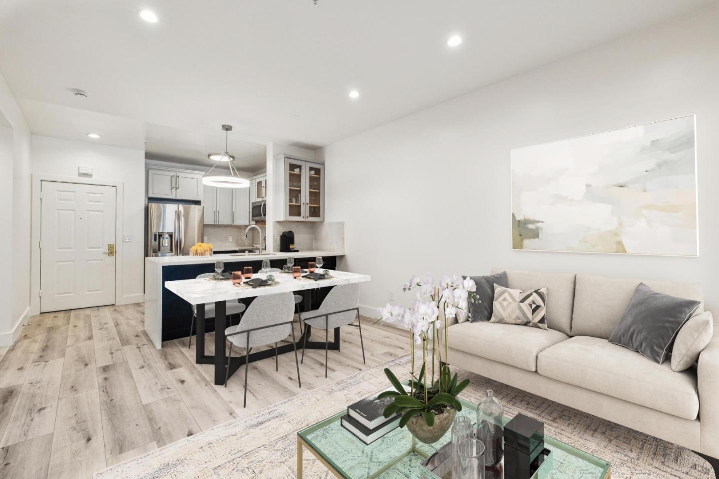 This beautifully remodeled 1-bedroom plus bonus guest bedroom unit offers a rare opportunity to own in the highly desirable Parc Crossings community. The expansive, light-filled living room flows seamlessly onto a large private balcony with tranquil, park-like views. The home showcases brand-new hardwood flooring throughout, freshly painted interiors, and a fully updated kitchen featuring sleek marble countertops, modern cabinetry, and high-end stainless steel appliances. The stylishly remodeled bathroom complements the home's clean, modern look. Additional comforts include an in-unit washer and dryer, a Nest thermostat, and a central HVAC system for year-round climate control. Residents enjoy secure underground parking, additional storage, and access to amenities such as a pool, hot tub, clubhouse and playground. Ideally located within walking distance to Caltrain, Whole Foods, Safeway, Starbucks, and 24-Hour Fitness, this home also offers easy access to highways 280, 101, and 85. Situated near the borders of Los Altos and Palo Alto, unit 152 lies within the highly rated Los Altos School District. Whether you're enjoying the community's peaceful green spaces or the nearby shopping and dining, this home delivers the perfect blend of comfort, style, and convenience.